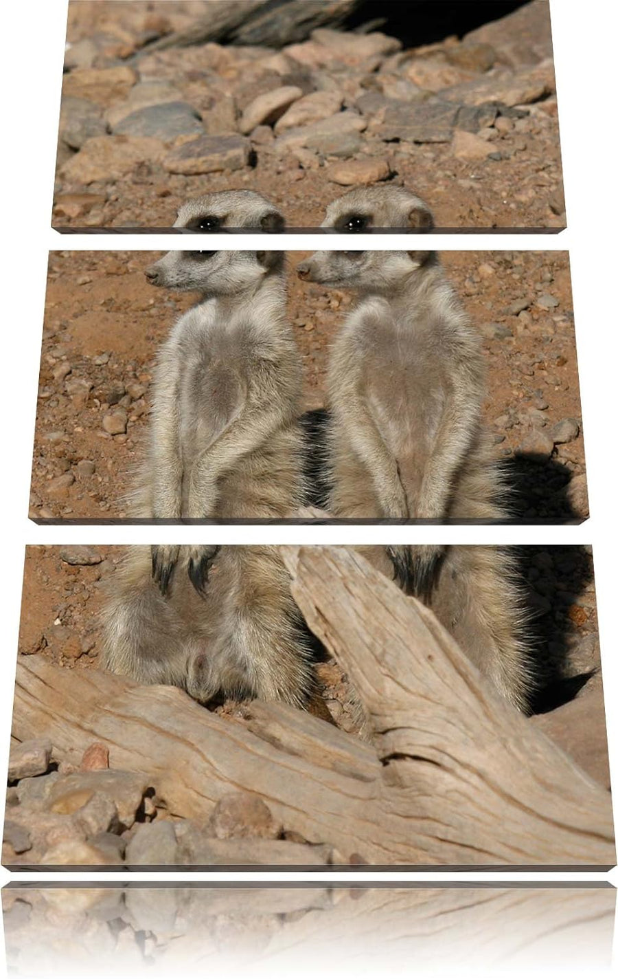 Pixxprint kleines frechen Erdmännchen als Leinwandbild | Grösse: 3 Teilig (120x80) | Wandbild| Kunst