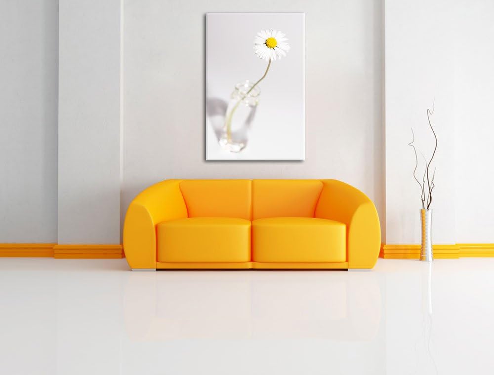 Pixxprint kleines Gänseblümchen im Glas auf Leinwand, XXL riesige Bilder fertig gerahmt mit Keilrahm