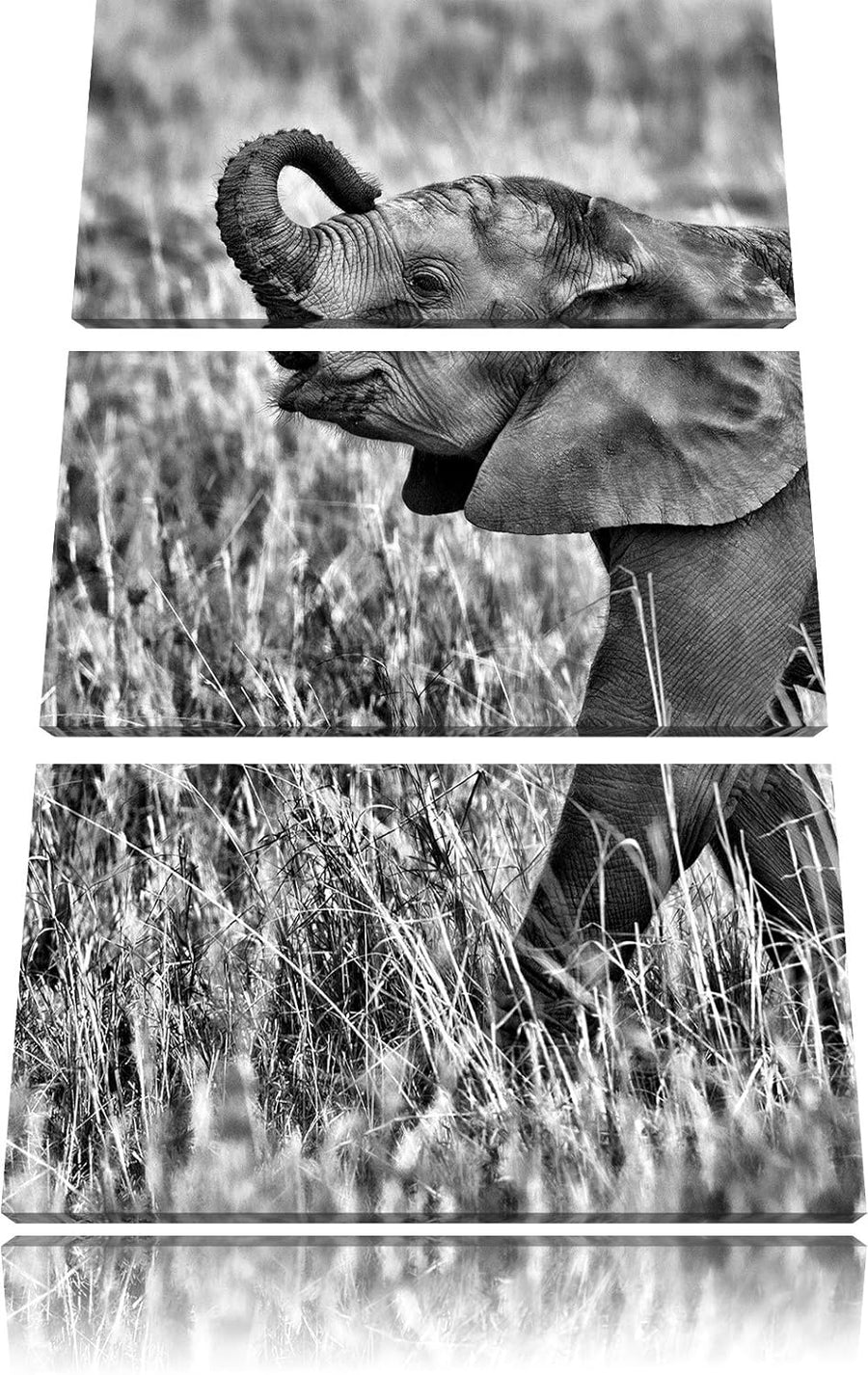 Pixxprint kleines Elefantenjunges als Leinwandbild/Grösse: 3 Teilig (120x80) cm/Wandbild/Kunstdruck/