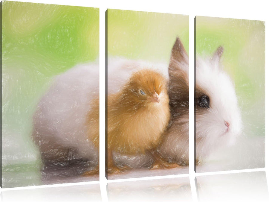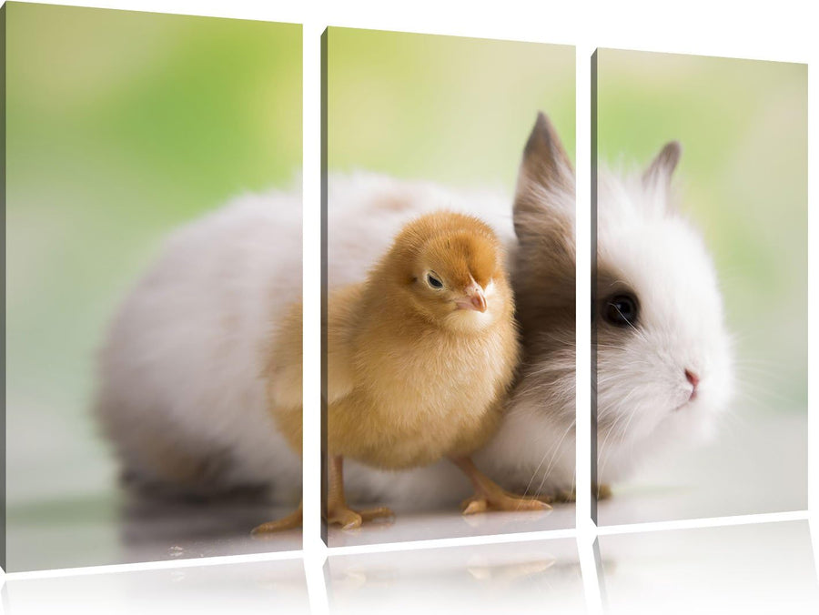 Pixxprint kleines Küken mit süssem Häschen 3-Teiler Leinwandbild 120x80 Bild auf Leinwand