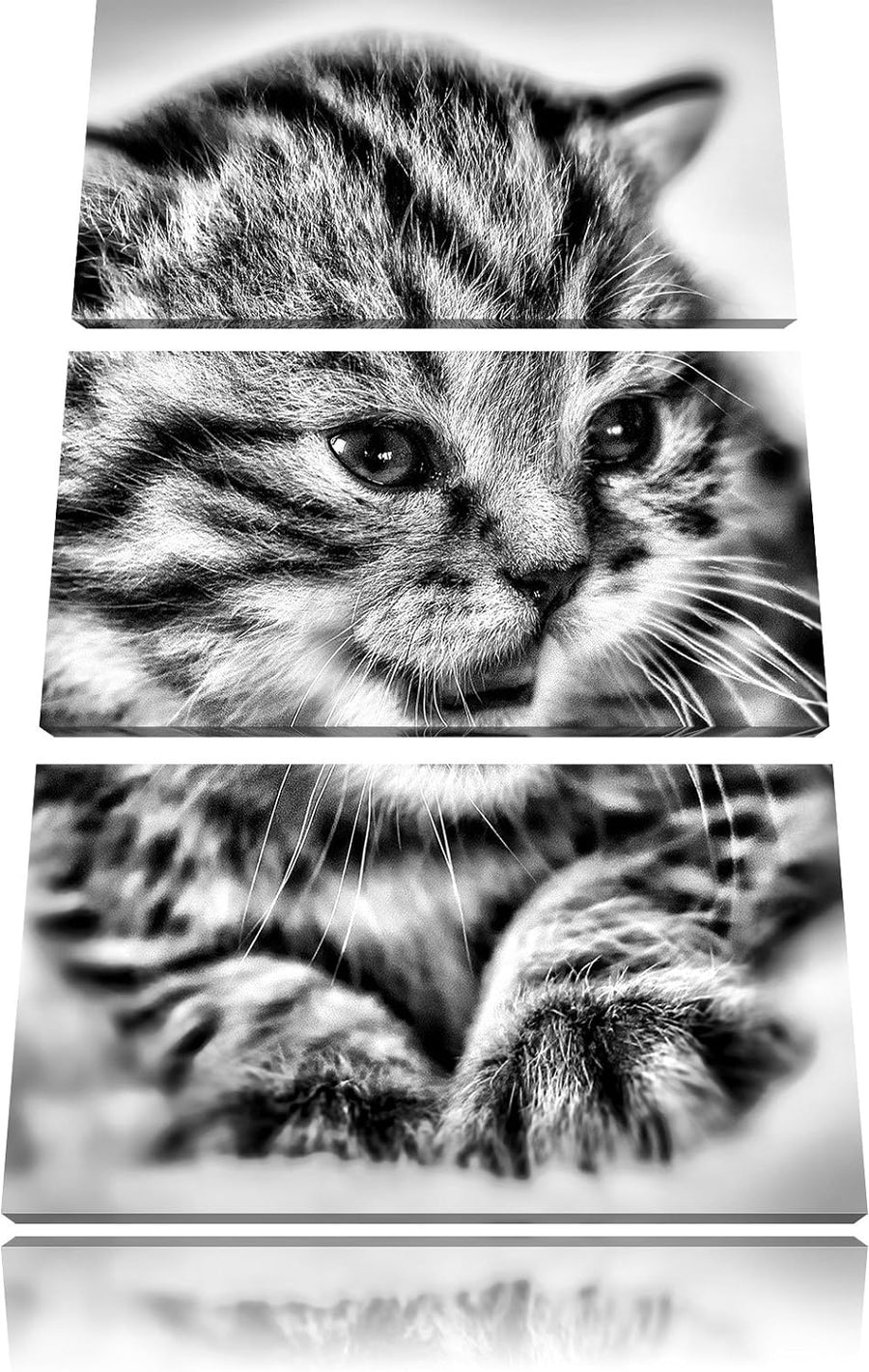 Pixxprint kleines Kätzchen auf weisser Decke als Leinwandbild/Grösse: 3 Teilig (120x80) cm/Wandbild/
