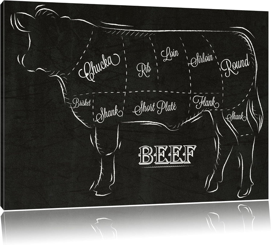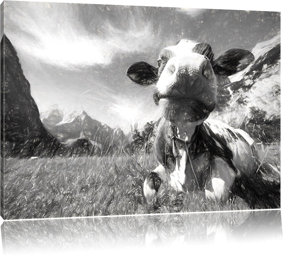 Pixxprint Kuh Kreidezeichnung als Leinwandbild/Grösse: 100x70 / Wandbild/Kunstdruck/fertig bespannt,