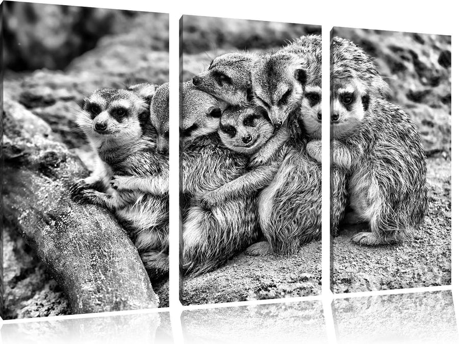 Pixxprint kuschelnde Erdmännchen als Leinwandbild/Grösse: 3 Teilig (120x80) / Wandbild/Kunstdruck/fe