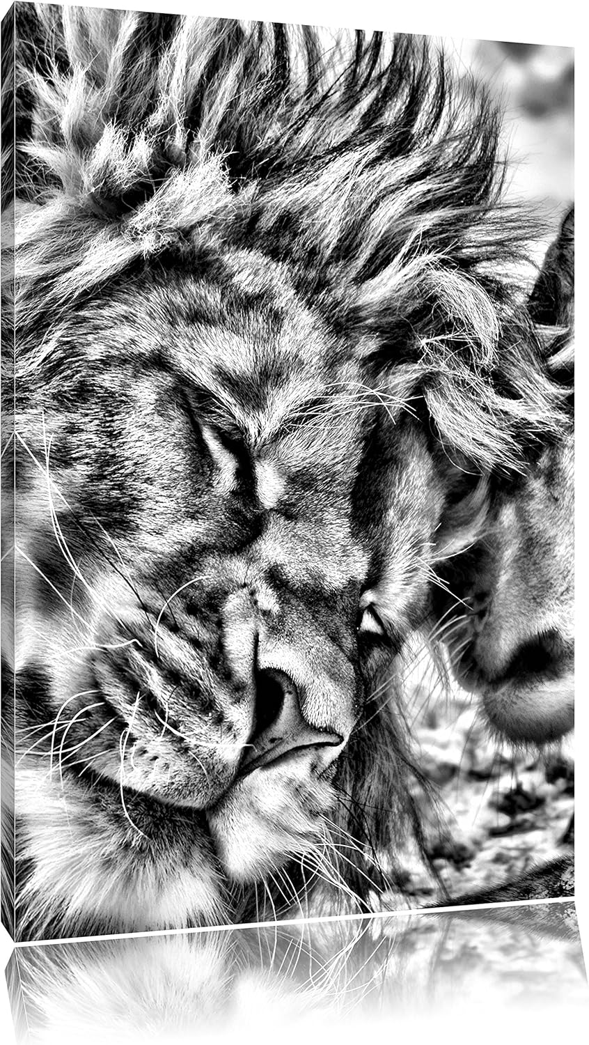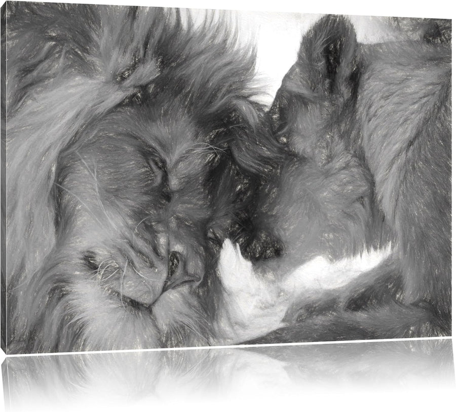 Pixxprint Kuschelnde Löwen als Leinwandbild/Grösse: 100x70 cm/Wandbild/Kunstdruck/fertig bespannt, 1