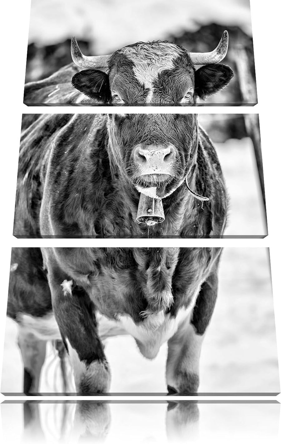Pixxprint Kuhbullen in Schneelandschaft als Leinwandbild/Grösse: 3 Teilig (120x80) cm/Wandbild/Kunst