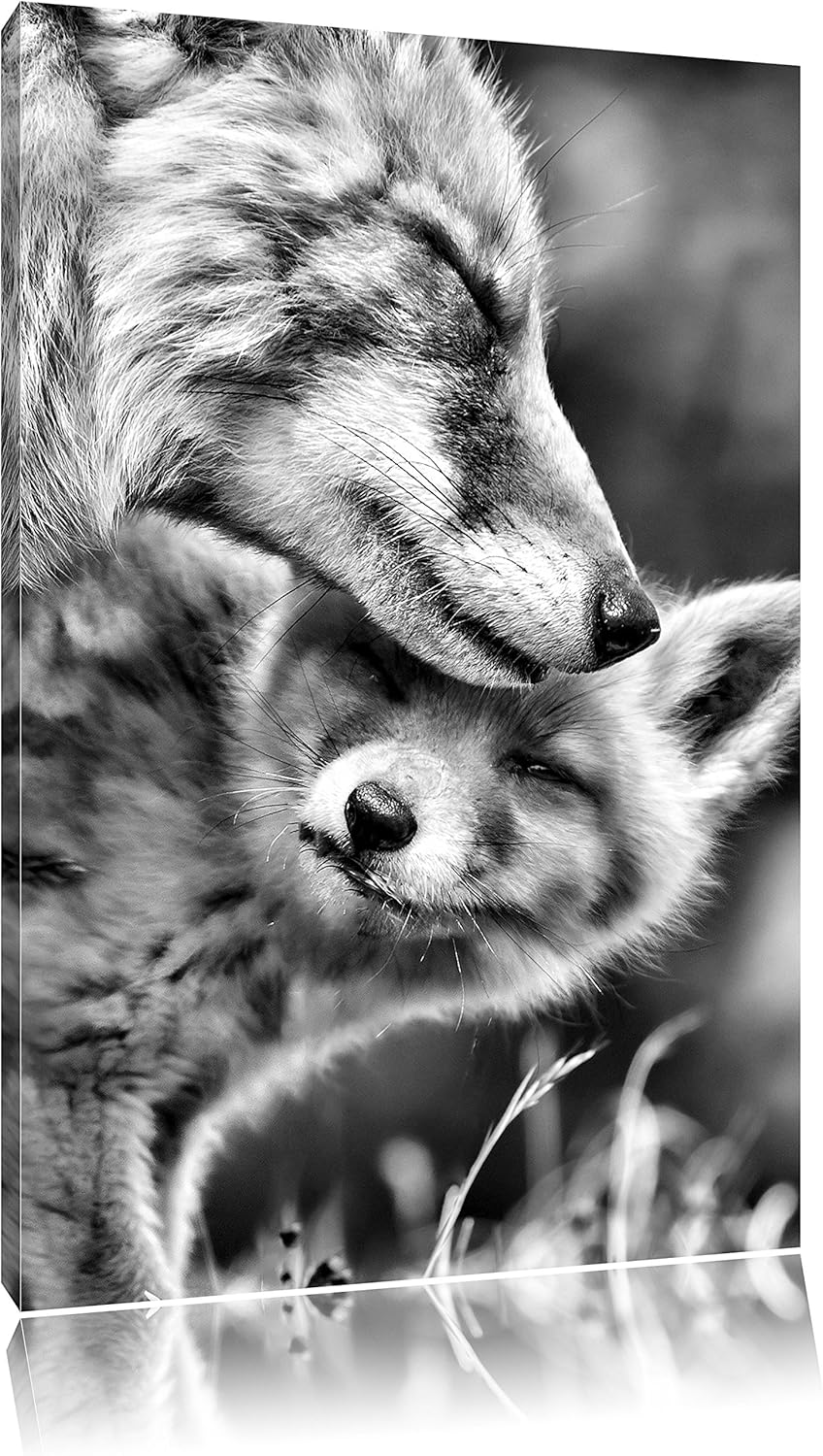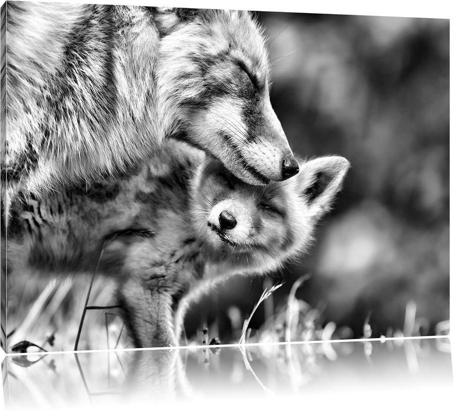 Pixxprint Kuschelnde Füchse als Leinwandbild/Grösse: 100x70 / Wandbild/Kunstdruck/fertig bespannt, 1