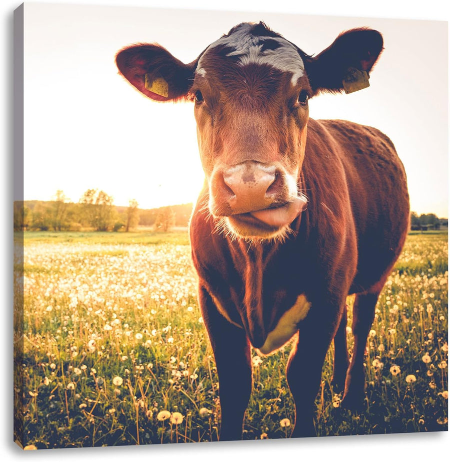 Pixxprint Kuh auf Butterblumenwiese als Leinwandbild/Grösse: 70x70 cm/Wandbild/Kunstdruck/fertig bes