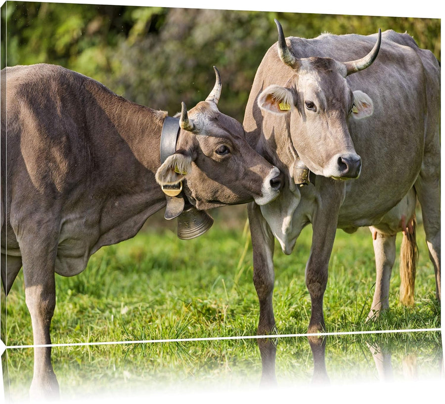 Pixxprint Kuh im Karwendelgebirge Kunst als Leinwandbild/Grösse: 100x70 / Wandbild/Kunstdruck/fertig