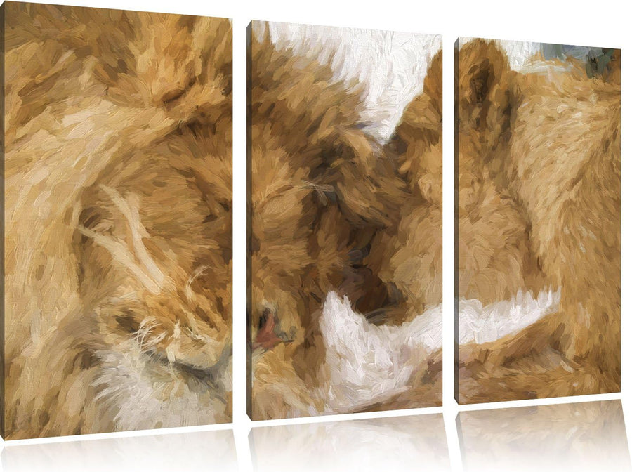 Pixxprint Kuschelnde Löwen Pinsel Effekt 3-Teiler Leinwandbild 120x80 Bild auf Leinwand