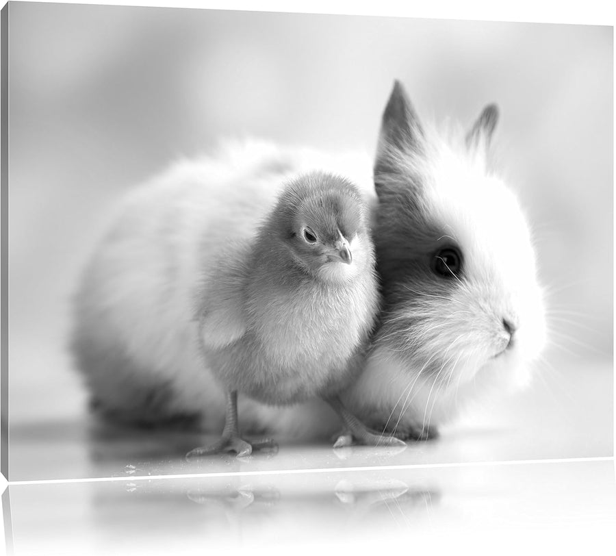 Pixxprint Küken mit Häschen / 100x70cm Leinwandbild bespannt auf Holzrahmen/Wandbild Kunstdruck Deko
