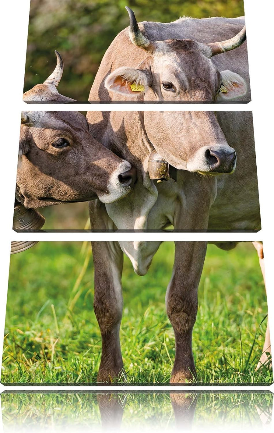 Pixxprint Kühe auf der Weide als Leinwandbild/Grösse: 3 Teilig (120x80 cm) cm/Wandbild/Kunstdruck/fe