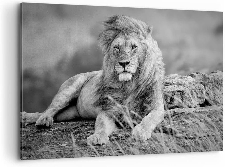 Bilder auf Leinwand 100x70cm Leinwandbild mit Rahmen Löwe Tiere Tierwelt Gross Wanddeko Bild Schlafz