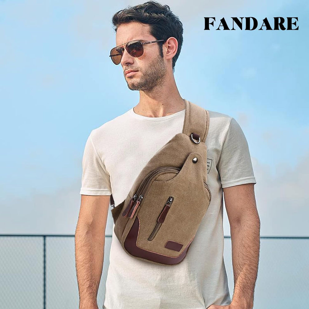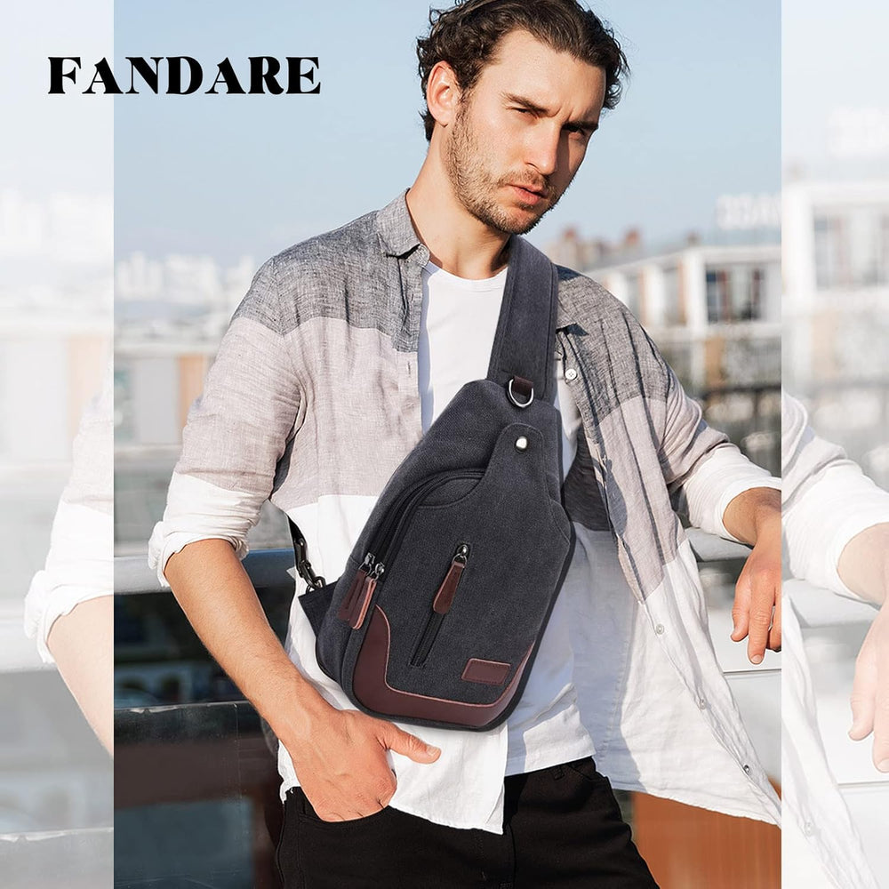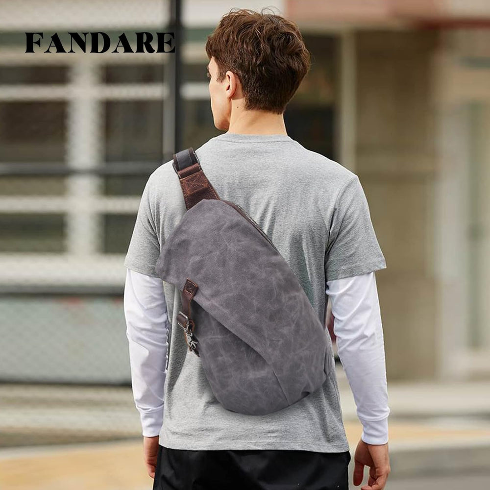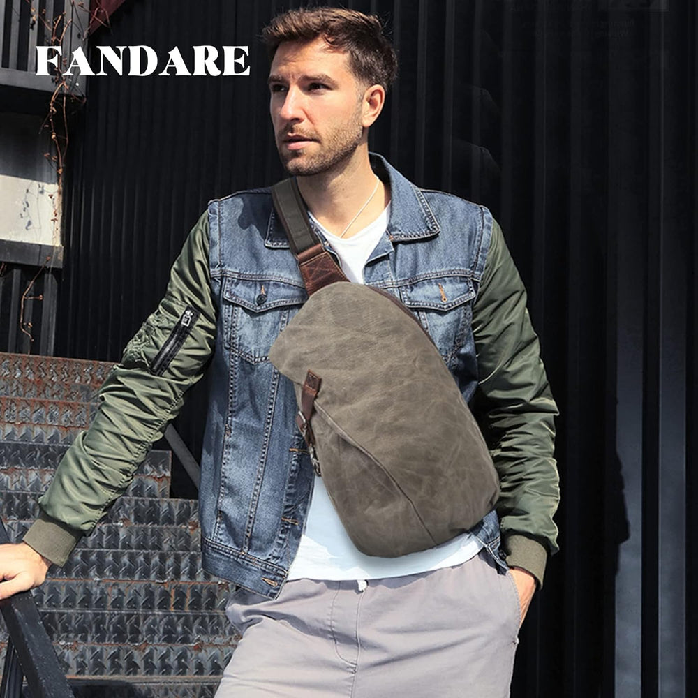 FANDARE Vintage Brusttasche Leinwand Schultertasche Herren Sling Chest Bag Beidseitig Umhängetasche