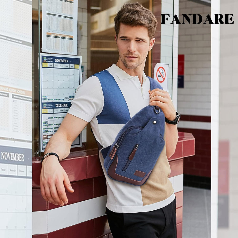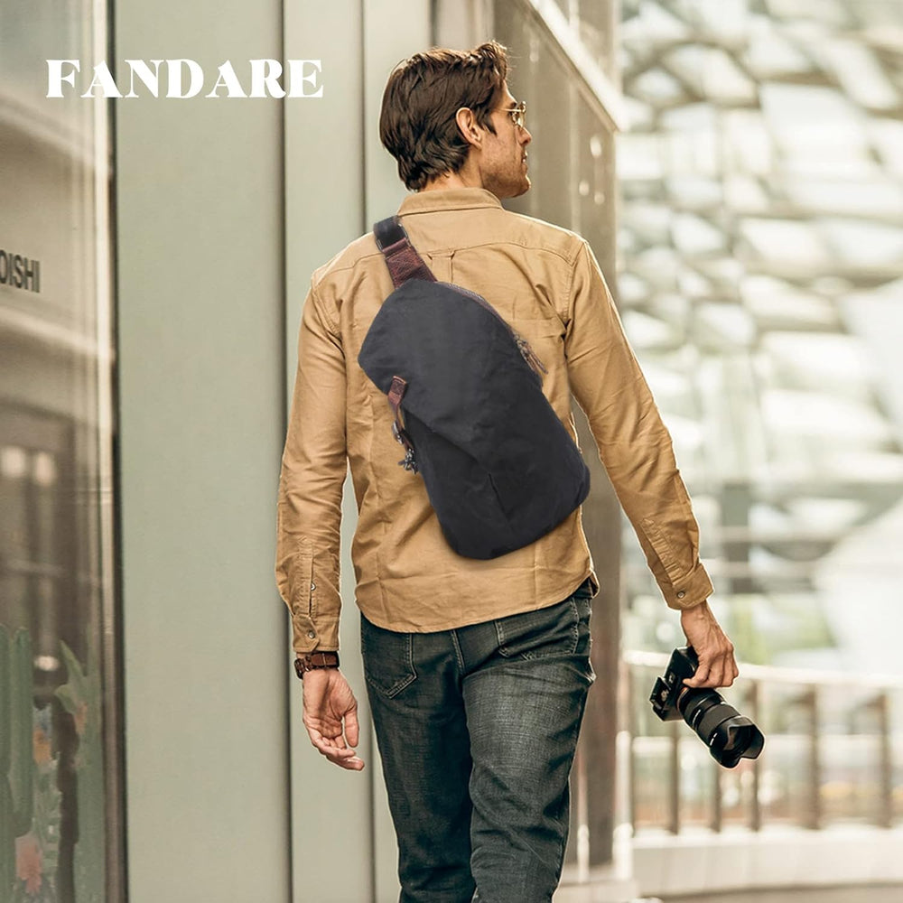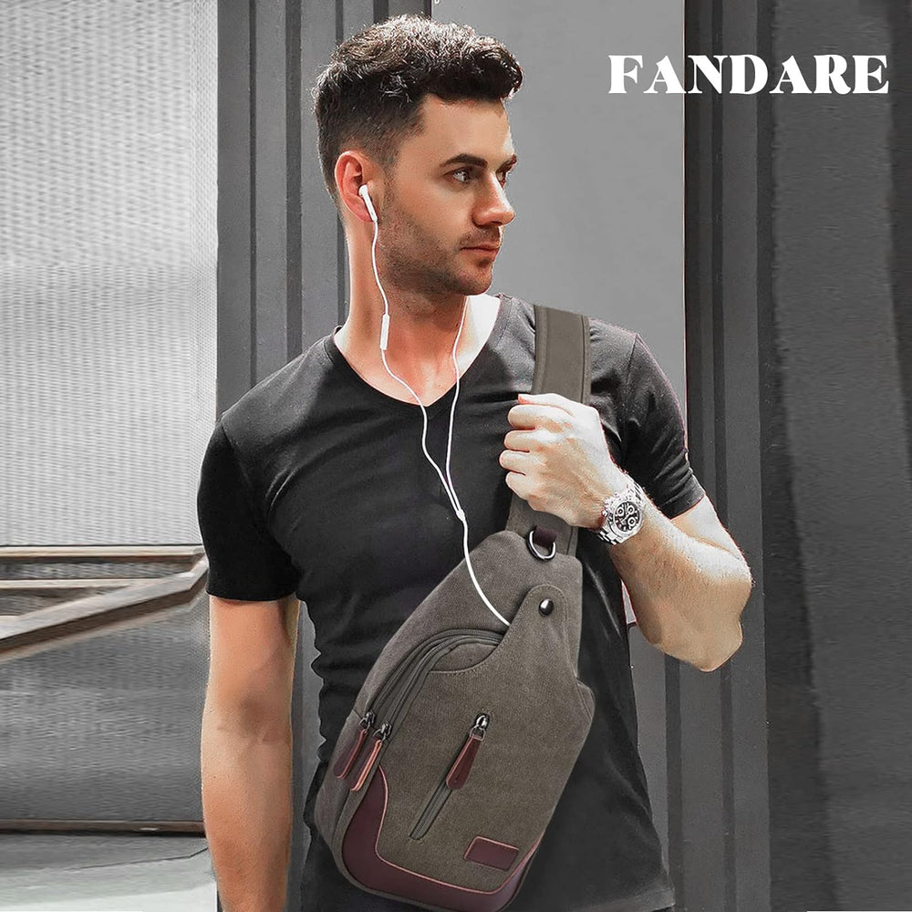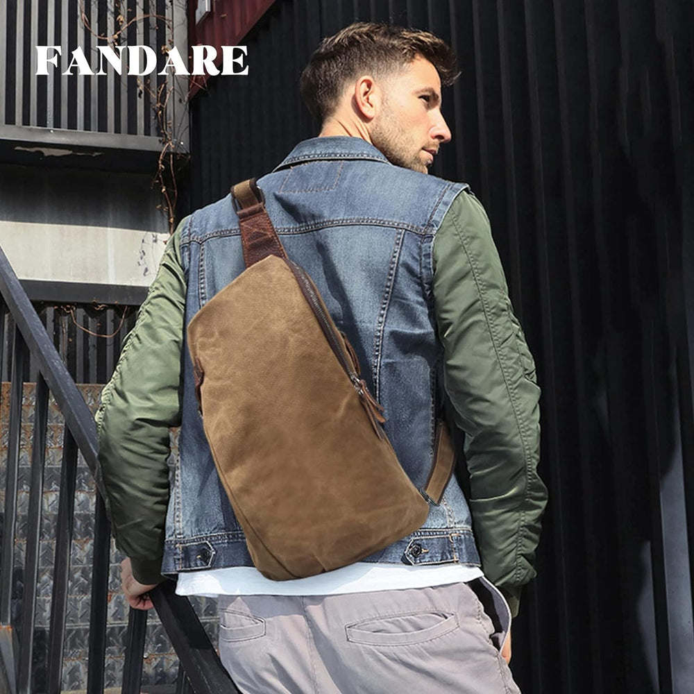 FANDARE Vintage Brusttasche Leinwand Schultertasche Herren Sling Chest Bag Beidseitig Umhängetasche
