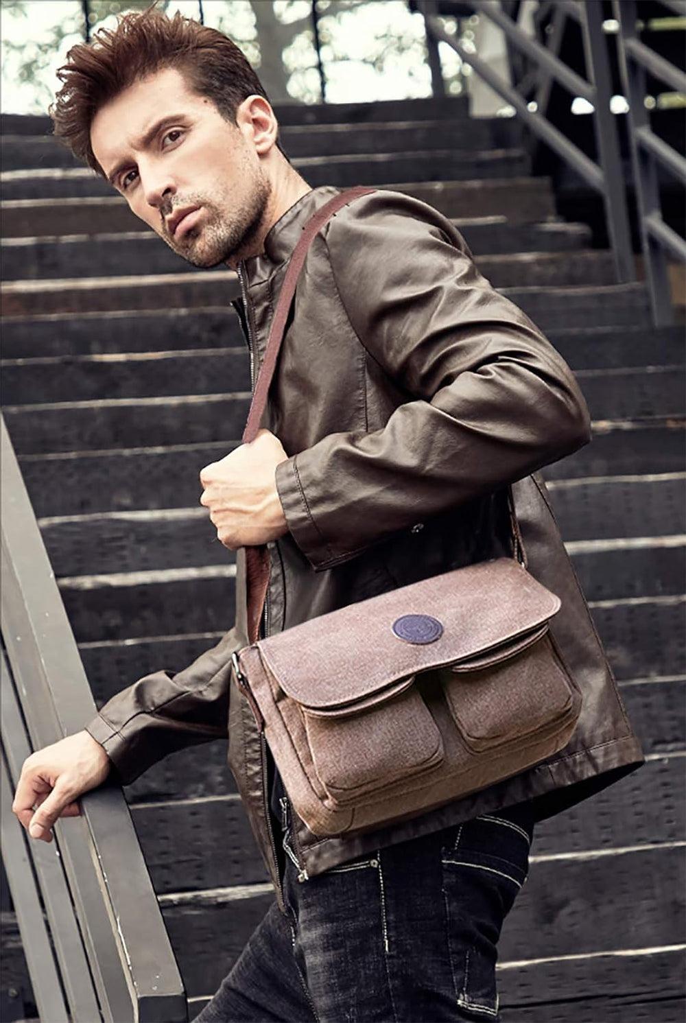 FANDARE Unisex Umhängetasche Leinwand Schultertasche 7.9 inch iPad Tasche Vintage Canvas Messenger T