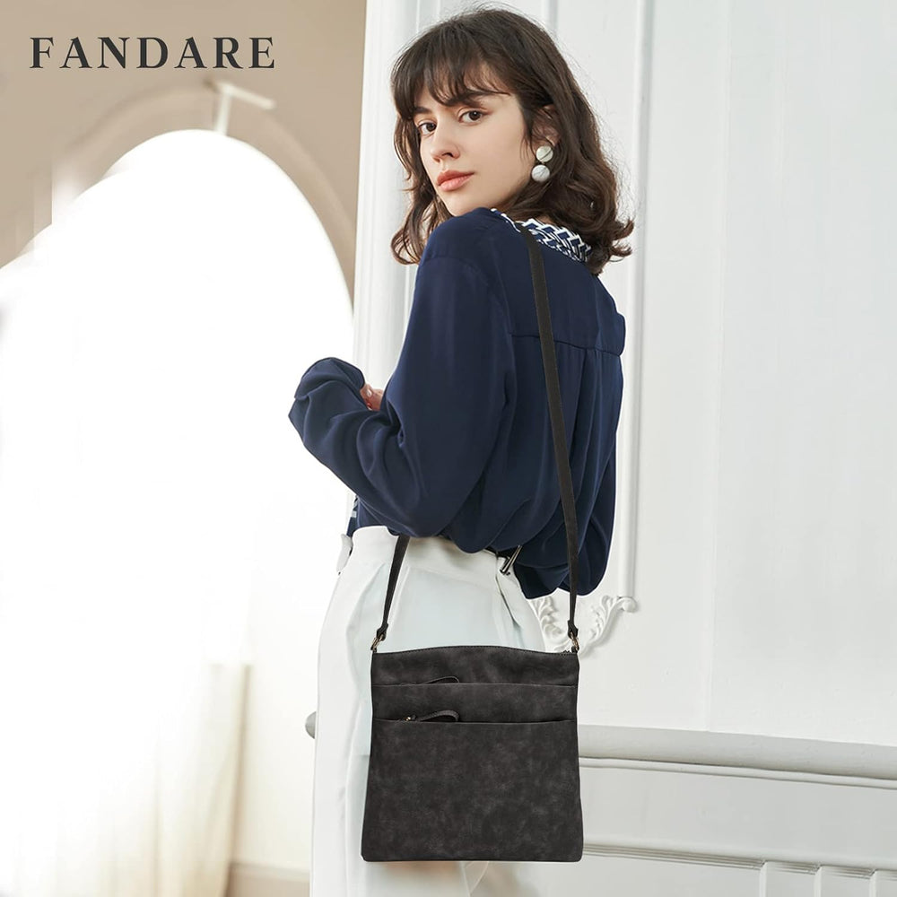 FANDARE Vintage Damen Schultertasche Wasserdicht Umhängetaschen Mehreren Taschen Schulterhandtasche