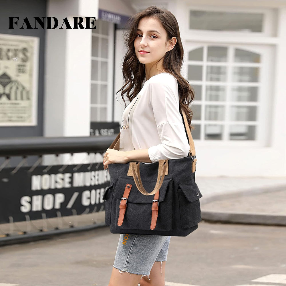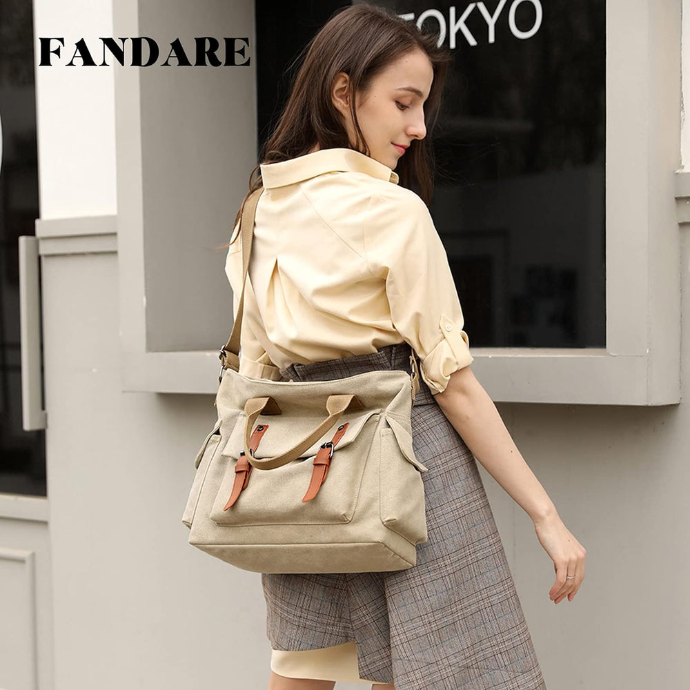FANDARE Vintage Handtaschen Leinwand Schultertasche Damen Umhängetasche Frauen Arbeitstasche für 10.