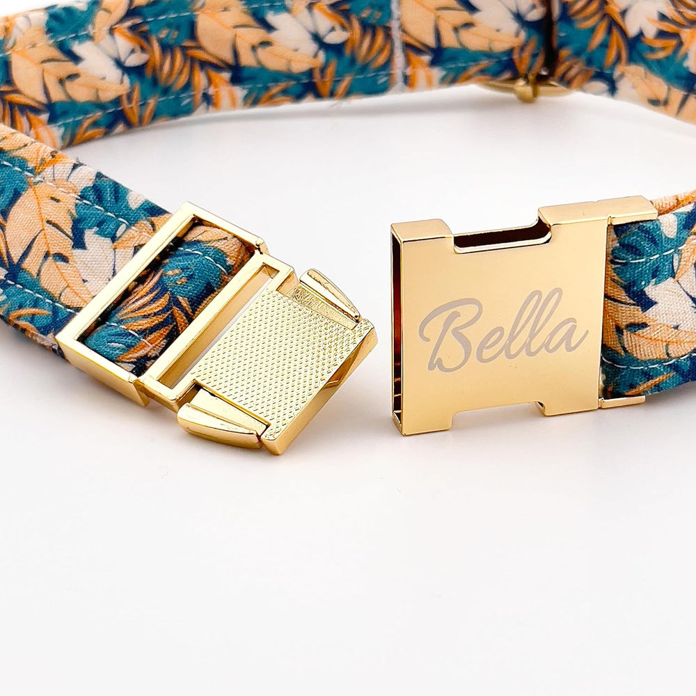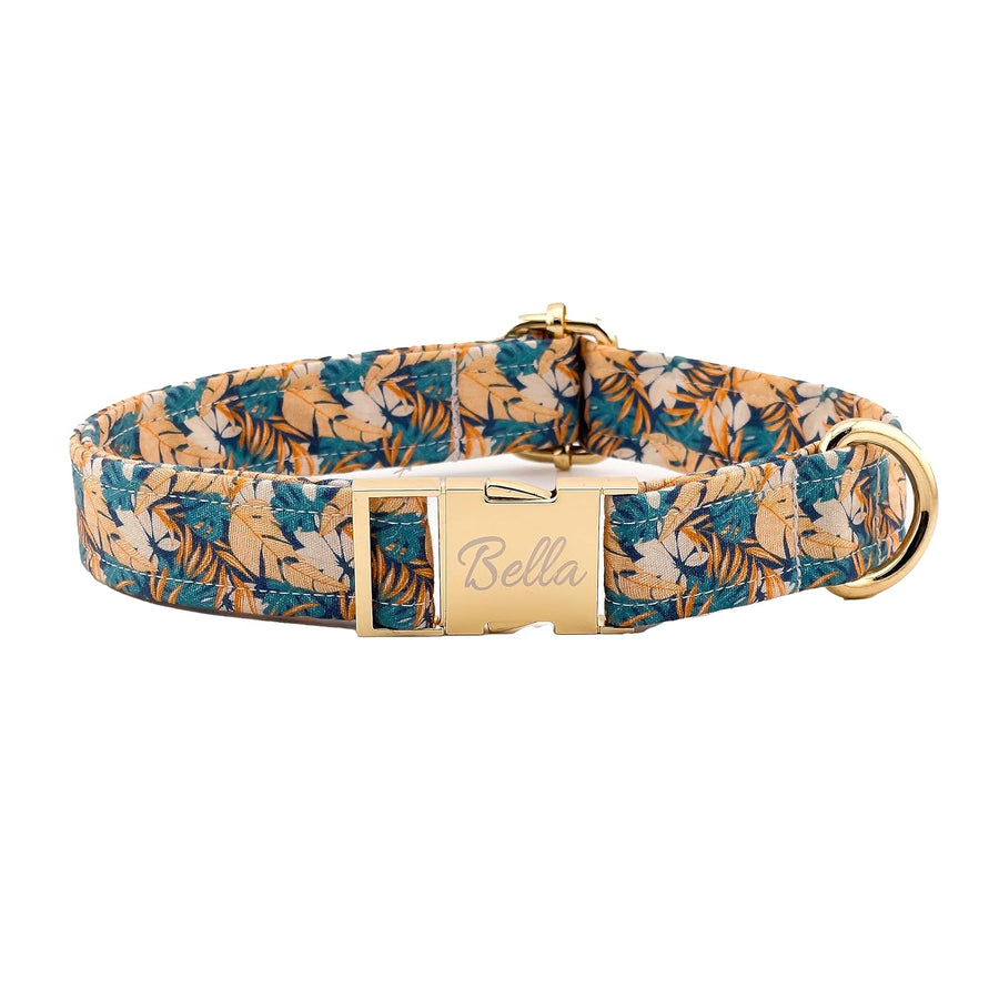 Personalisiert Bio-Baumwolle Hundehalsband - Handgefertigt in Dänemark - Tropische Blätter