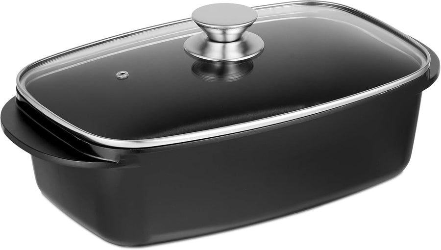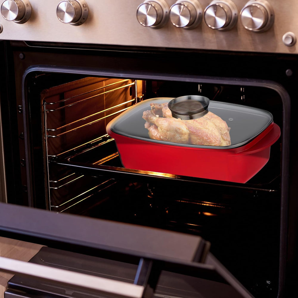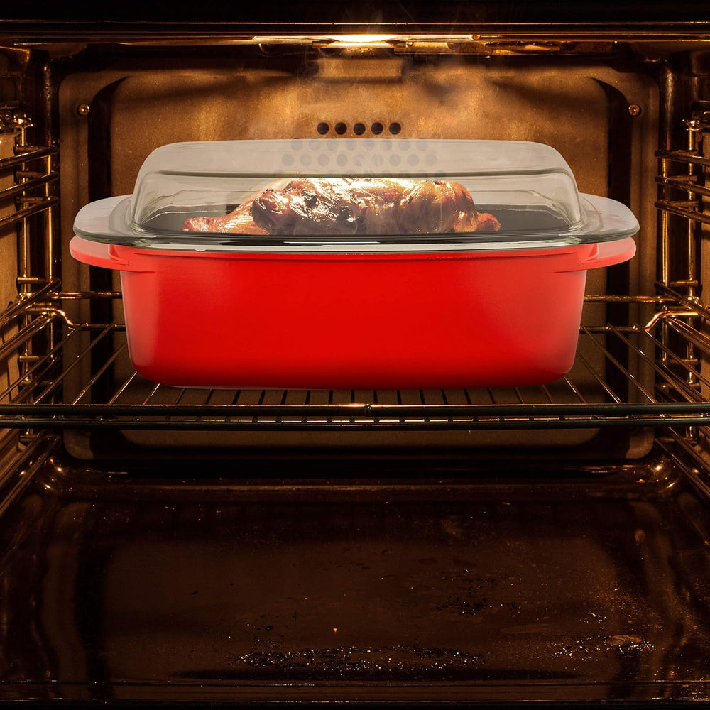 Relaxdays Bräter mit Glasdeckel, Bratentopf 5 L, beschichteter Aluminium Universalbräter, Elektro-&