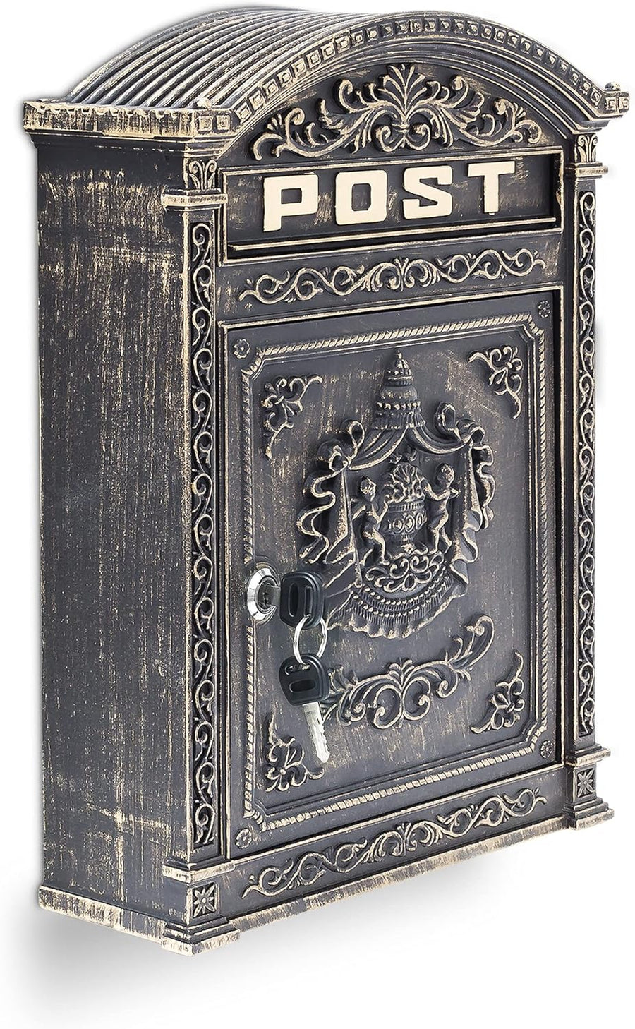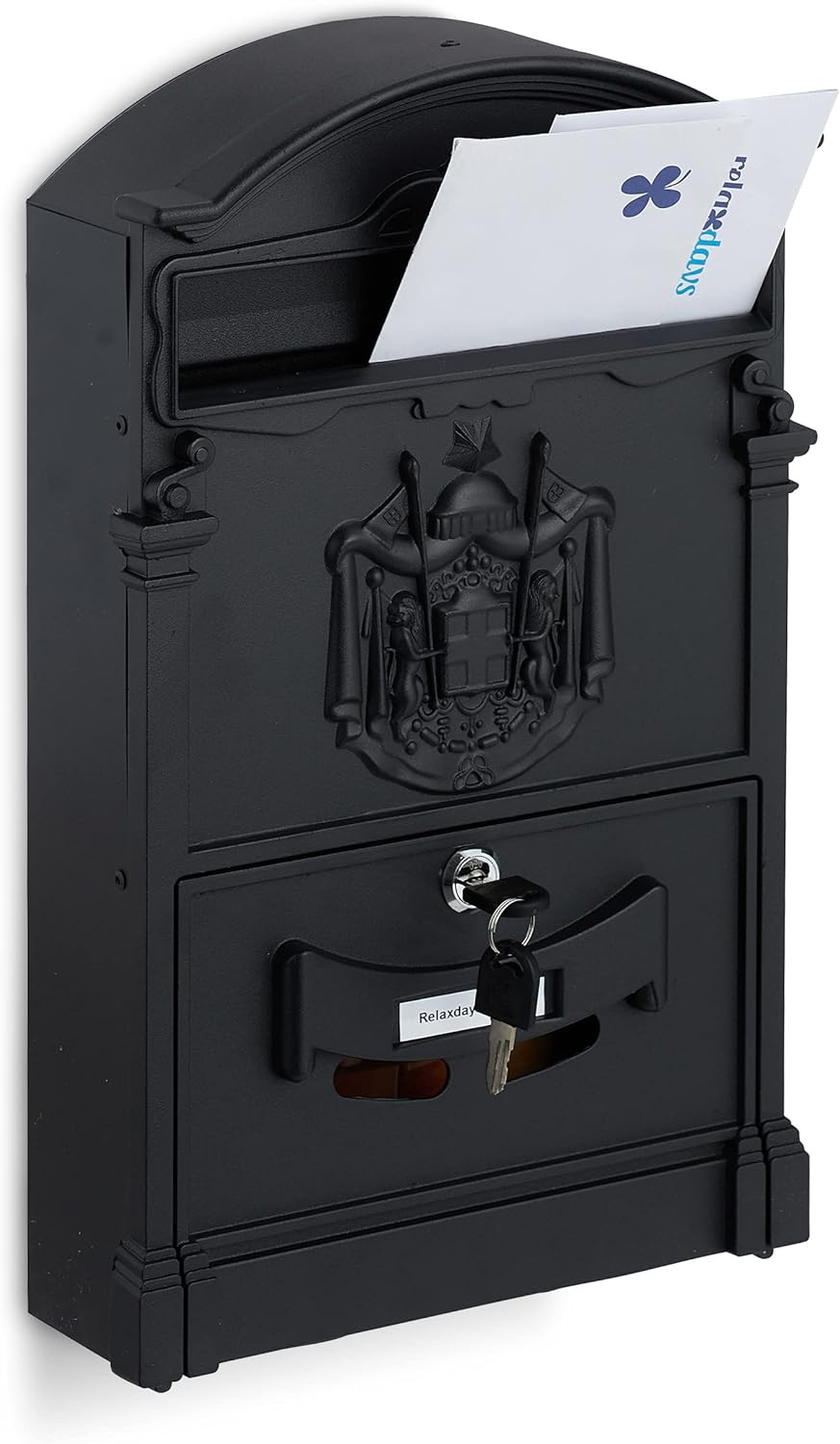 Relaxdays Briefkasten Antik Englischer Wandbriefkasten aus Aluguss mit breitem Briefschlitz für DIN