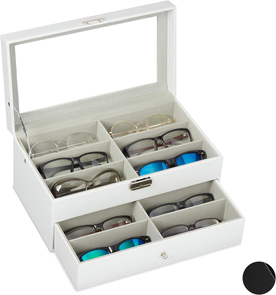 Relaxdays Brillenbox 12 Brillen, Aufbewahrung Sonnenbrillen, HBT: 15,5x33,5x19,5 cm, Kunstleder Bril