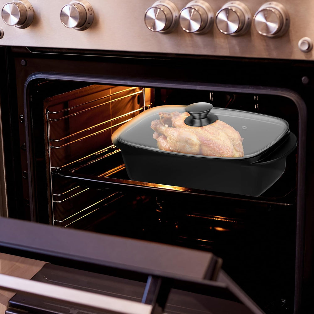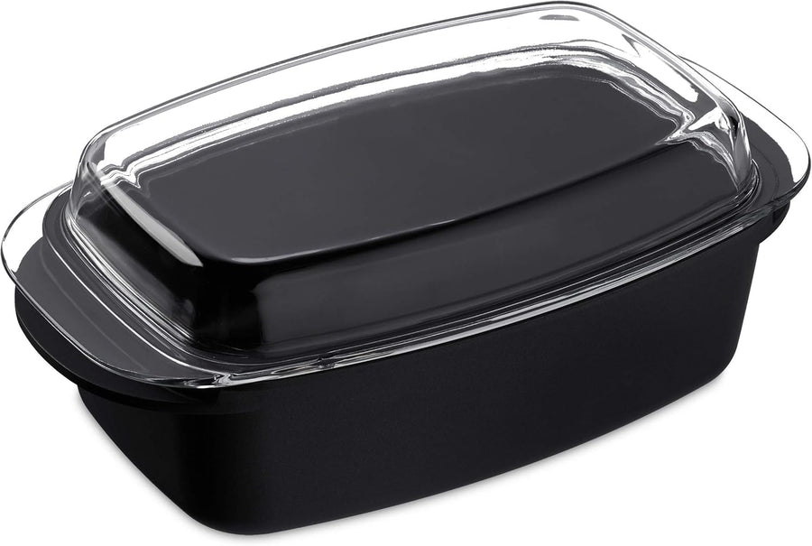Relaxdays Bräter mit Deckel, antihaftbeschichtet, Auflaufform, Aluminiumguss & Glas, spülmaschinenfe