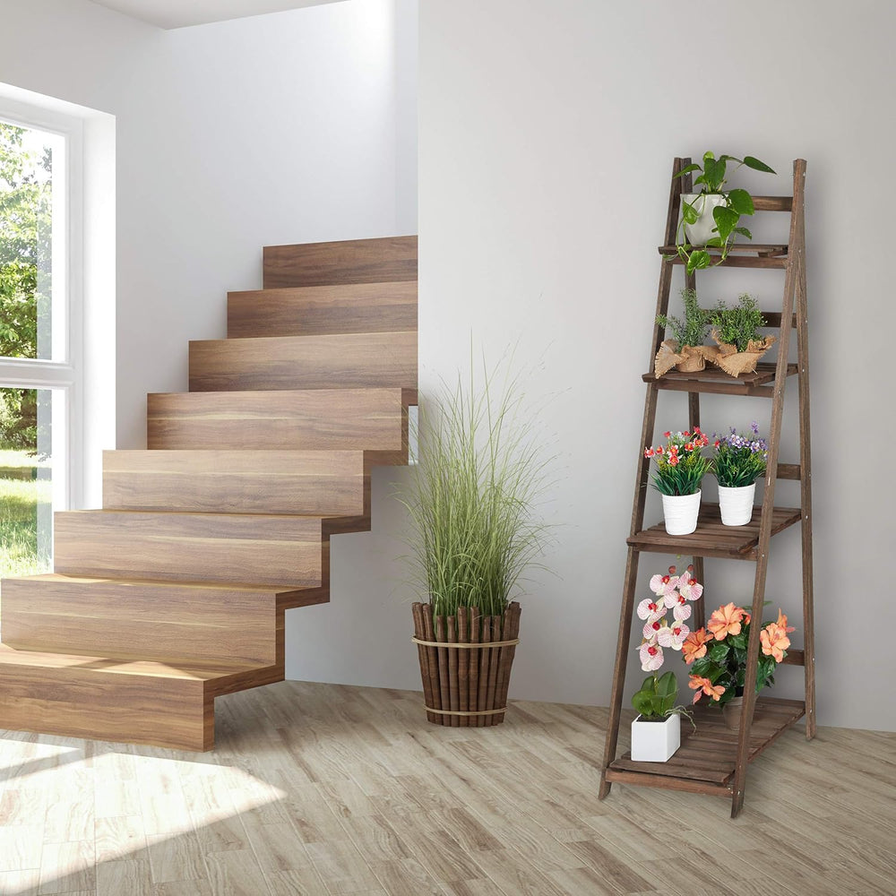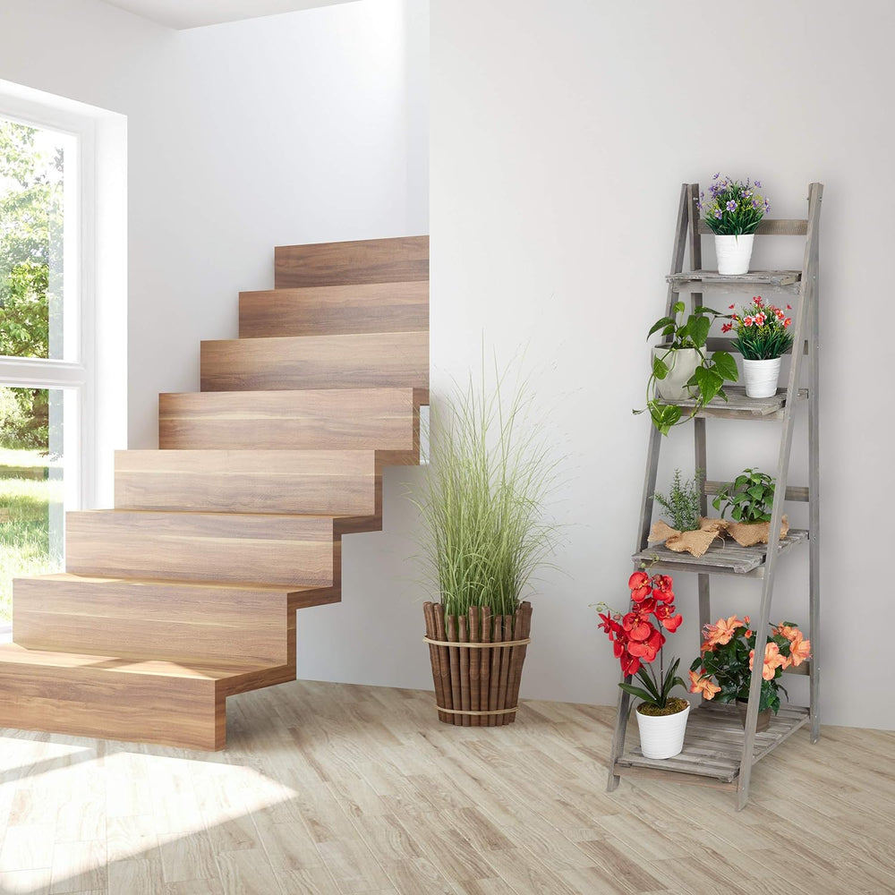 Relaxdays Blumentreppe, 4-stufig, Blumenleiter Holz, klappbar, Leiterregal Pflanzen, HBT: 160 x 41 x