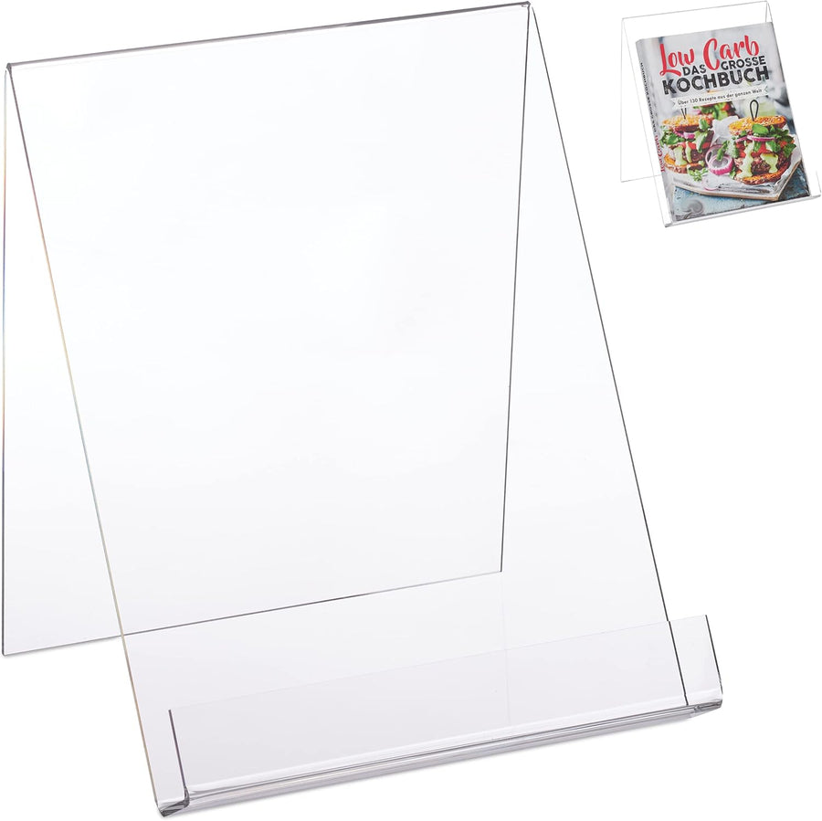 Relaxdays Buchaufsteller A4, Acryl Buchständer für grosse Bücher, stabil, Leseständer HxBxT 24 x 21