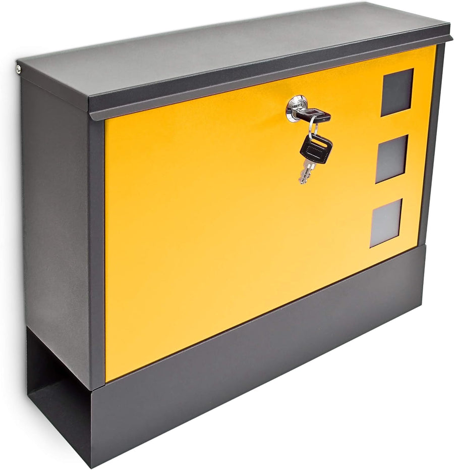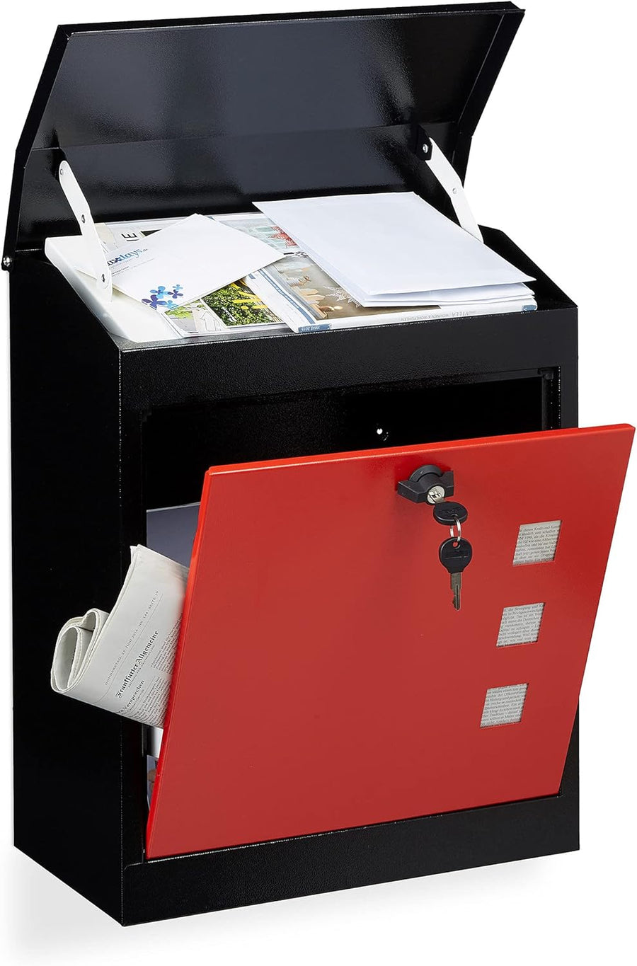 Relaxdays Briefkasten gross, Stahl, Sicherheits-Klappe, Schloss, HxBxT: 53 x 43,5 x 26 cm, Wandbrief