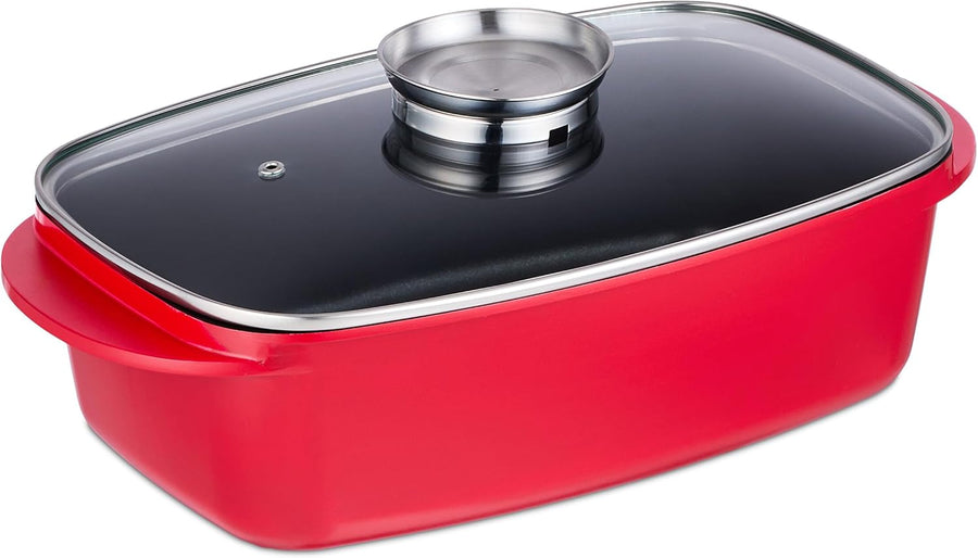 Relaxdays Bräter mit Deckel, Bratentopf 5 L, beschichteter Universalbräter mit Aromaknopf, für Elekt