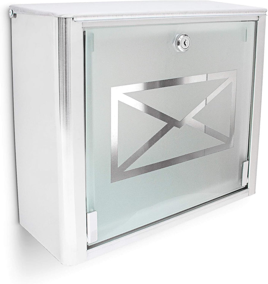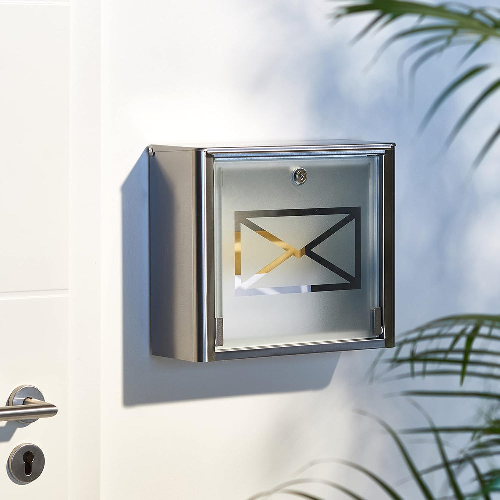 Relaxdays Briefkasten mit Motiv-Glastür, Postkasten Edelstahl, abschliessbar, HBT: ca. 30,5 x 35,5 x