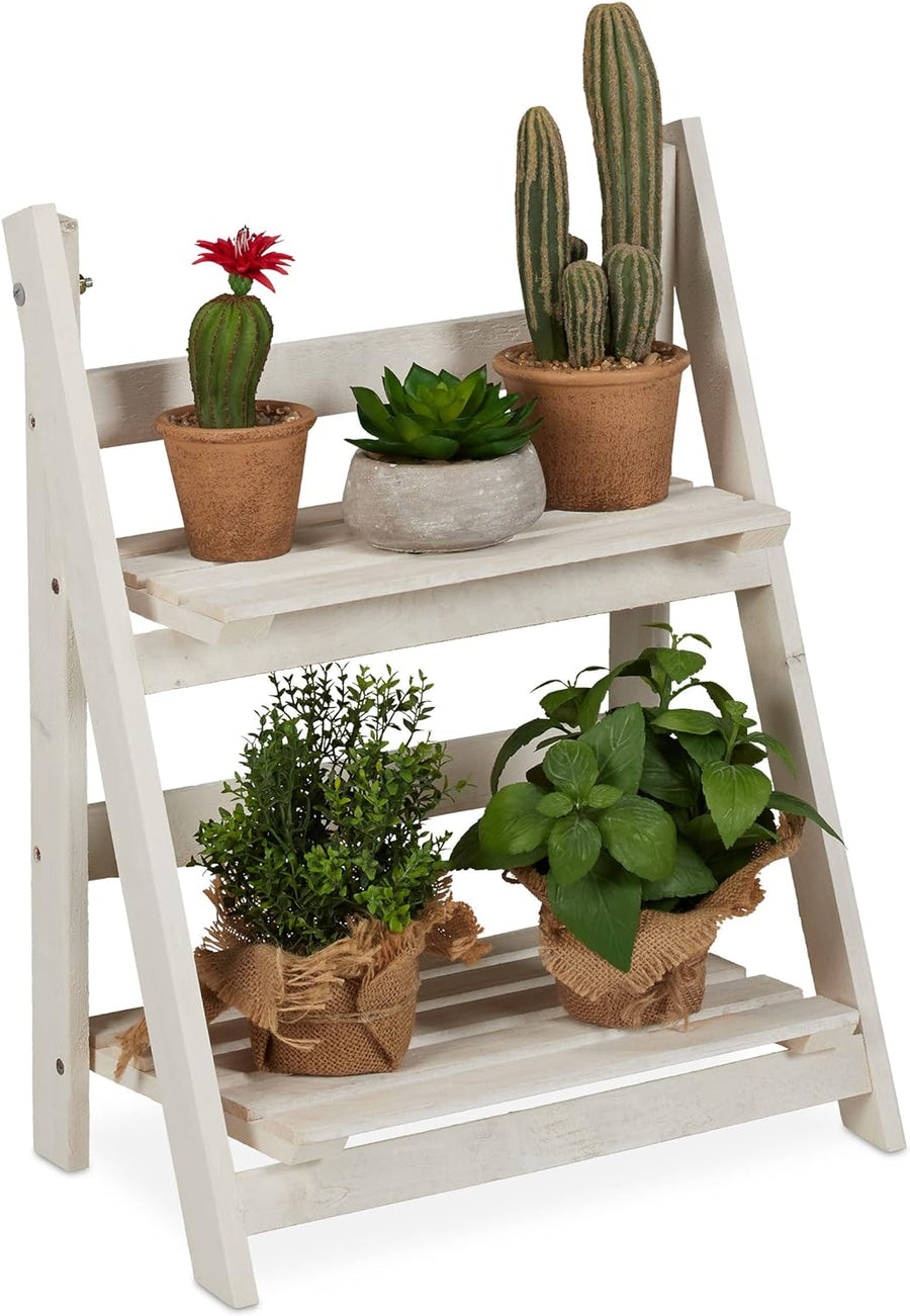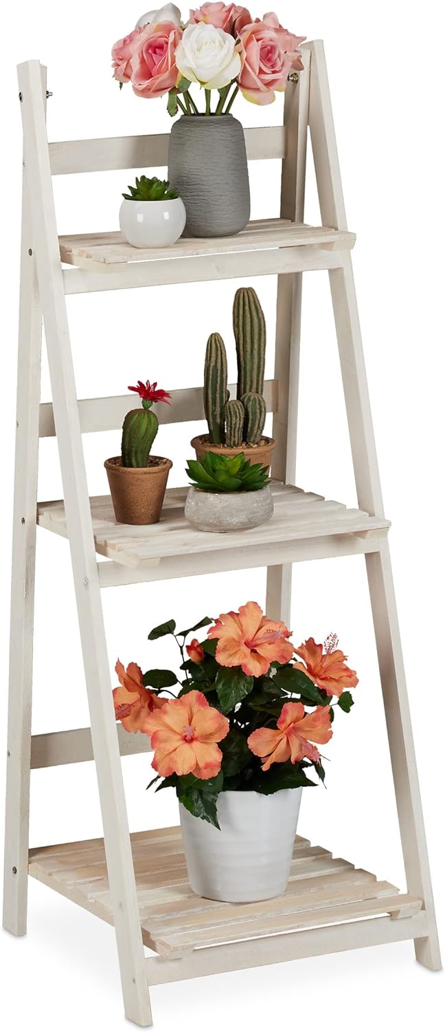 Relaxdays Blumentreppe, für innen & Balkon, Shabby-Chic Design, freistehend & klappbar, HBT: 51x41x2