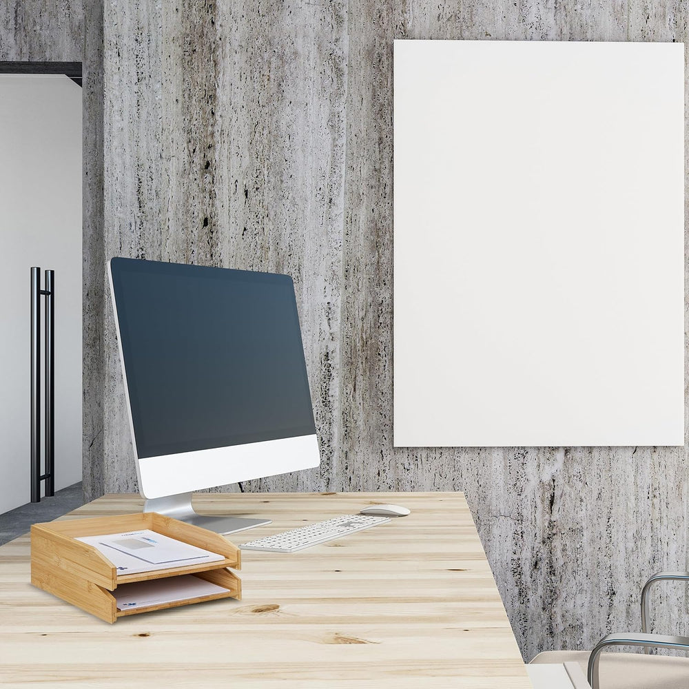 Relaxdays Briefablage 2er Set, aus Bambus, DIN A4 Grösse, stapelbare Dokumentenablage, für Schreibti