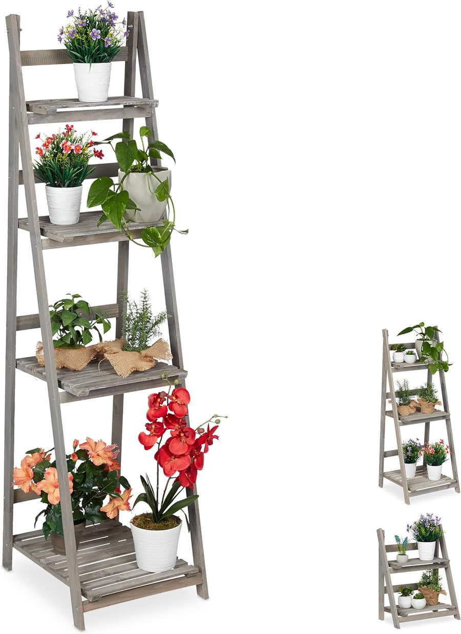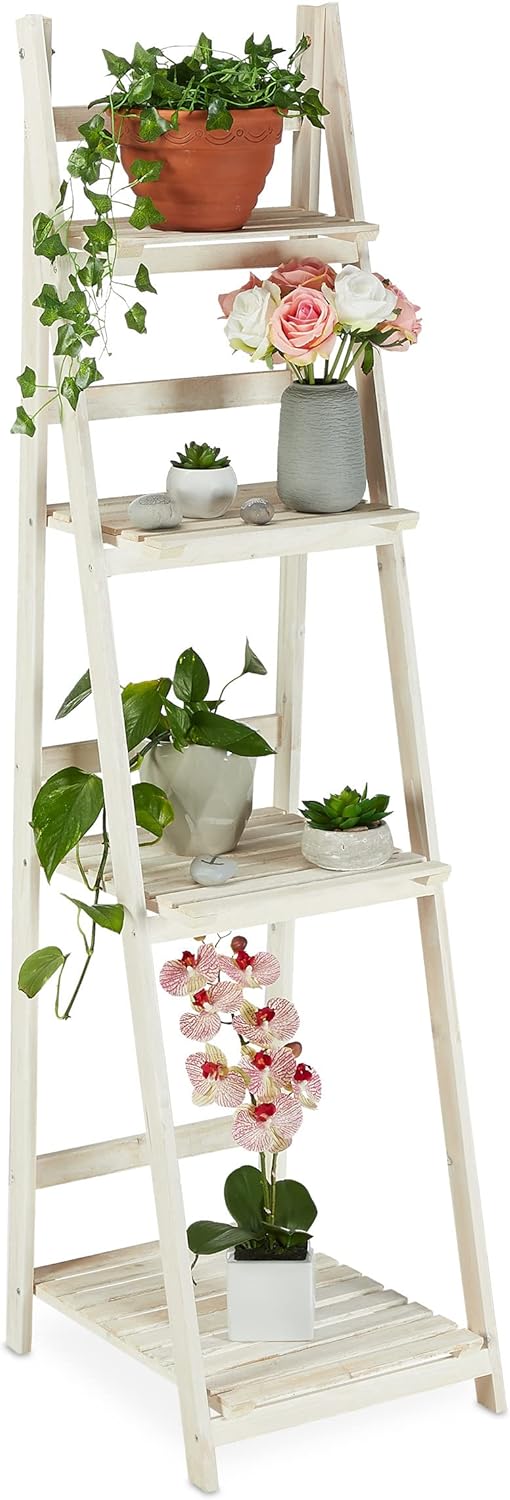 Relaxdays Blumentreppe, 4-stufig, Blumenleiter Holz, klappbar, Leiterregal für Pflanzen, HBT: 160 x