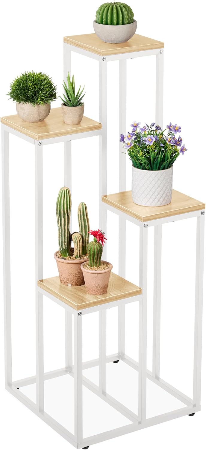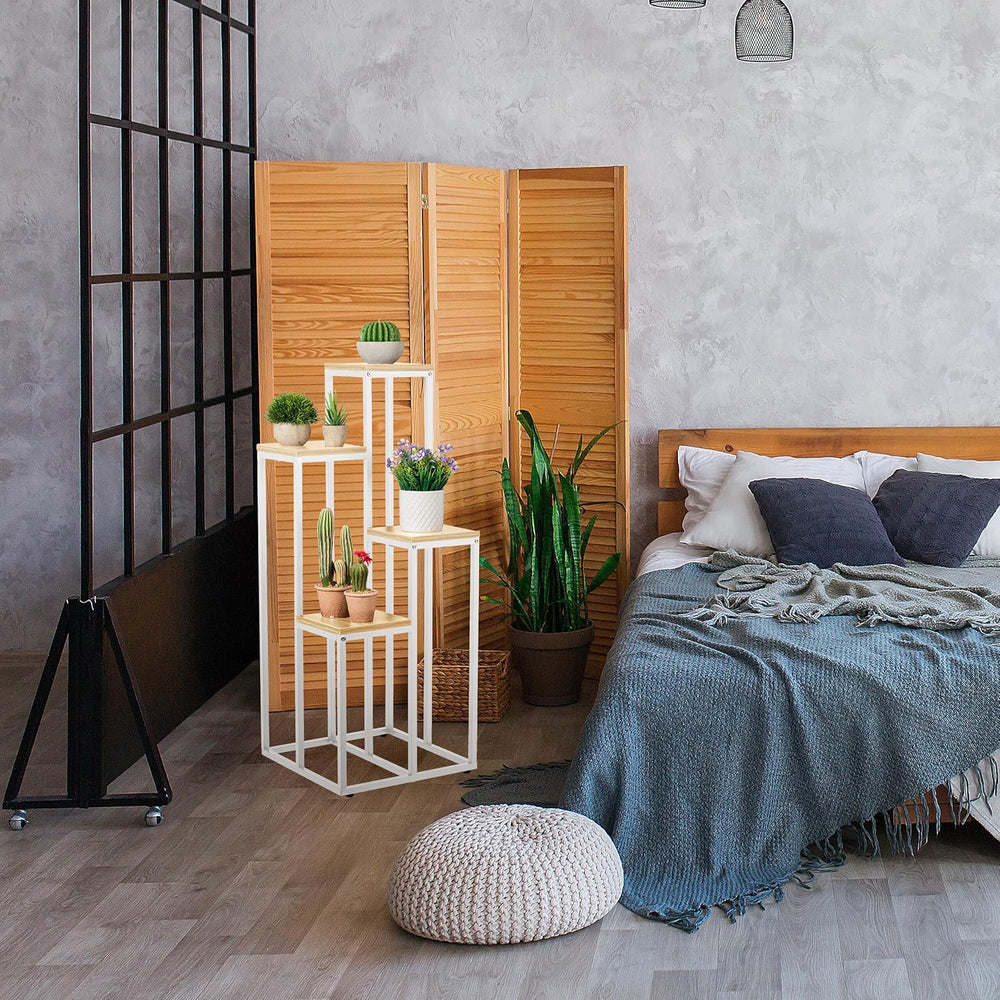 Relaxdays Blumentreppe, 4 Ablagen, HxBxT: 80 x 40 x 40 cm, platzsparend, Stahl und MDF, Design Blume