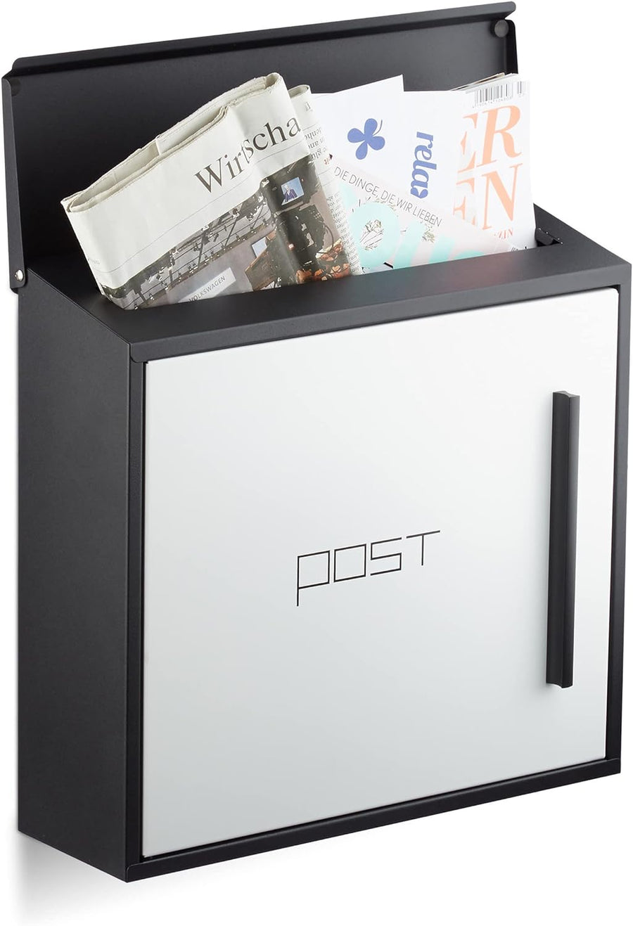 Relaxdays Briefkasten weiss modern Zweifarben Design, DIN-A4 Einwurf, Stahl, gross, HxBxT: 33 x 35 x
