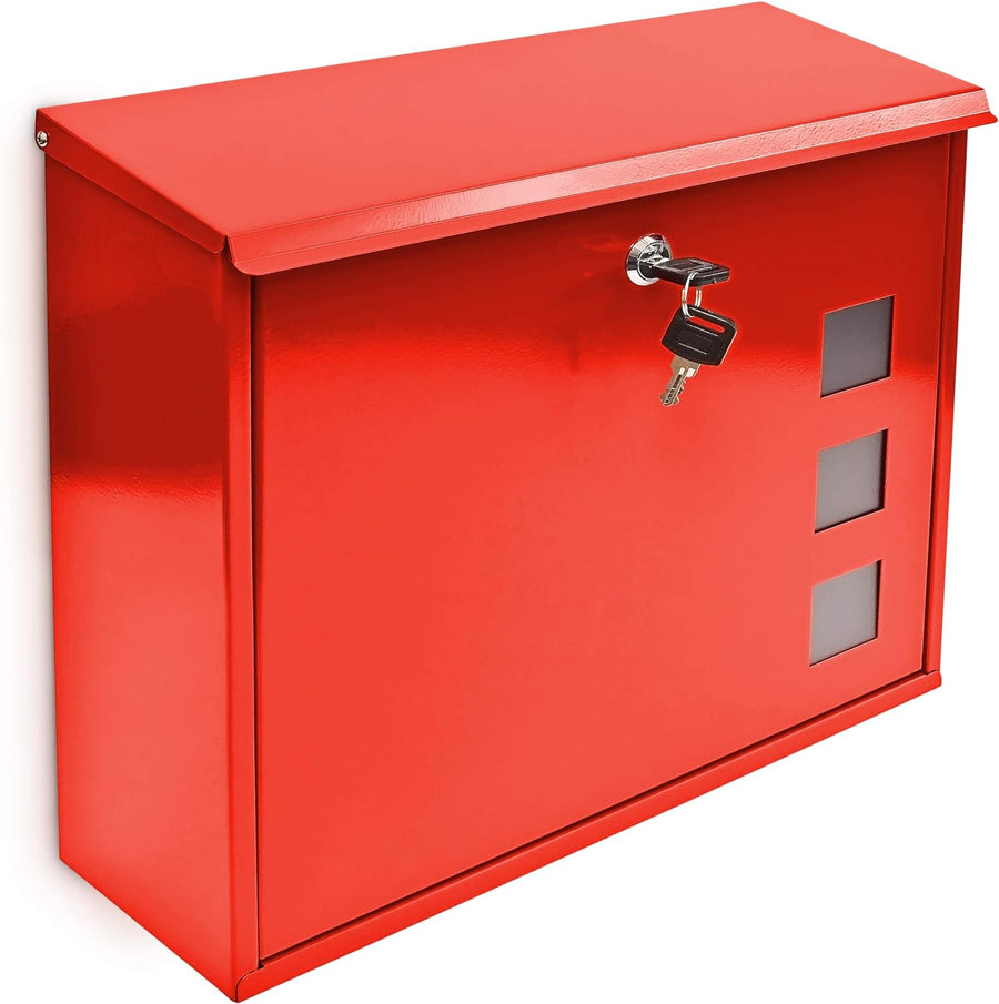 Relaxdays Briefkasten, Dekor-Fenster, 2 Schlüssel, Montagematerial, 33 x 34,5 x 10,5 cm, Metall, Pos