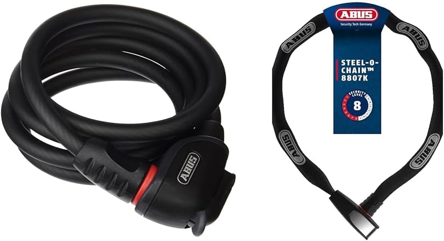 ABUS Kabelschloss Phantom 8950/180 KF - Fahrradschloss-Set & Kettenschloss Steel-O-Chain 8807K – Fle