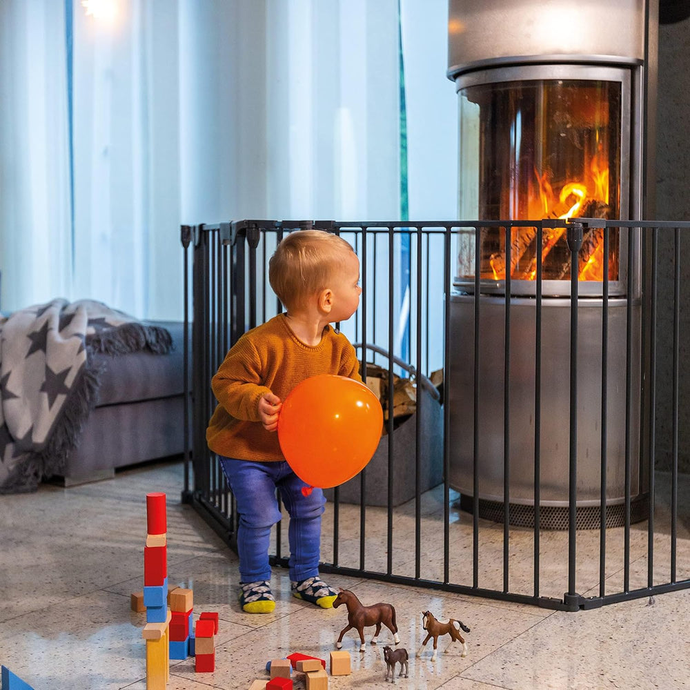 ABUS Kaminschutzgitter JC8700 FELIX - Kamingitter für den Kinderschutz mit Tür - Gesamtlänge 375 cm,