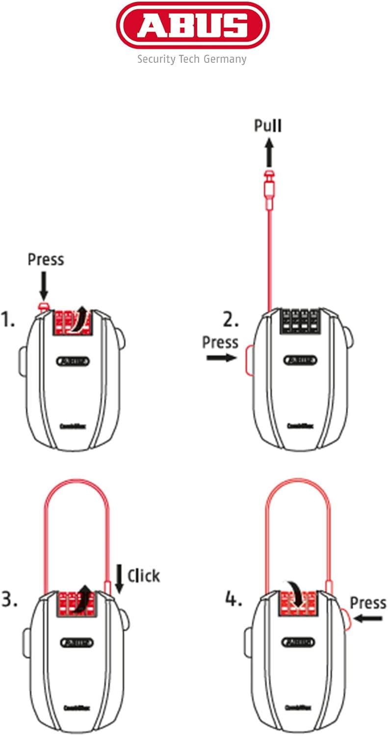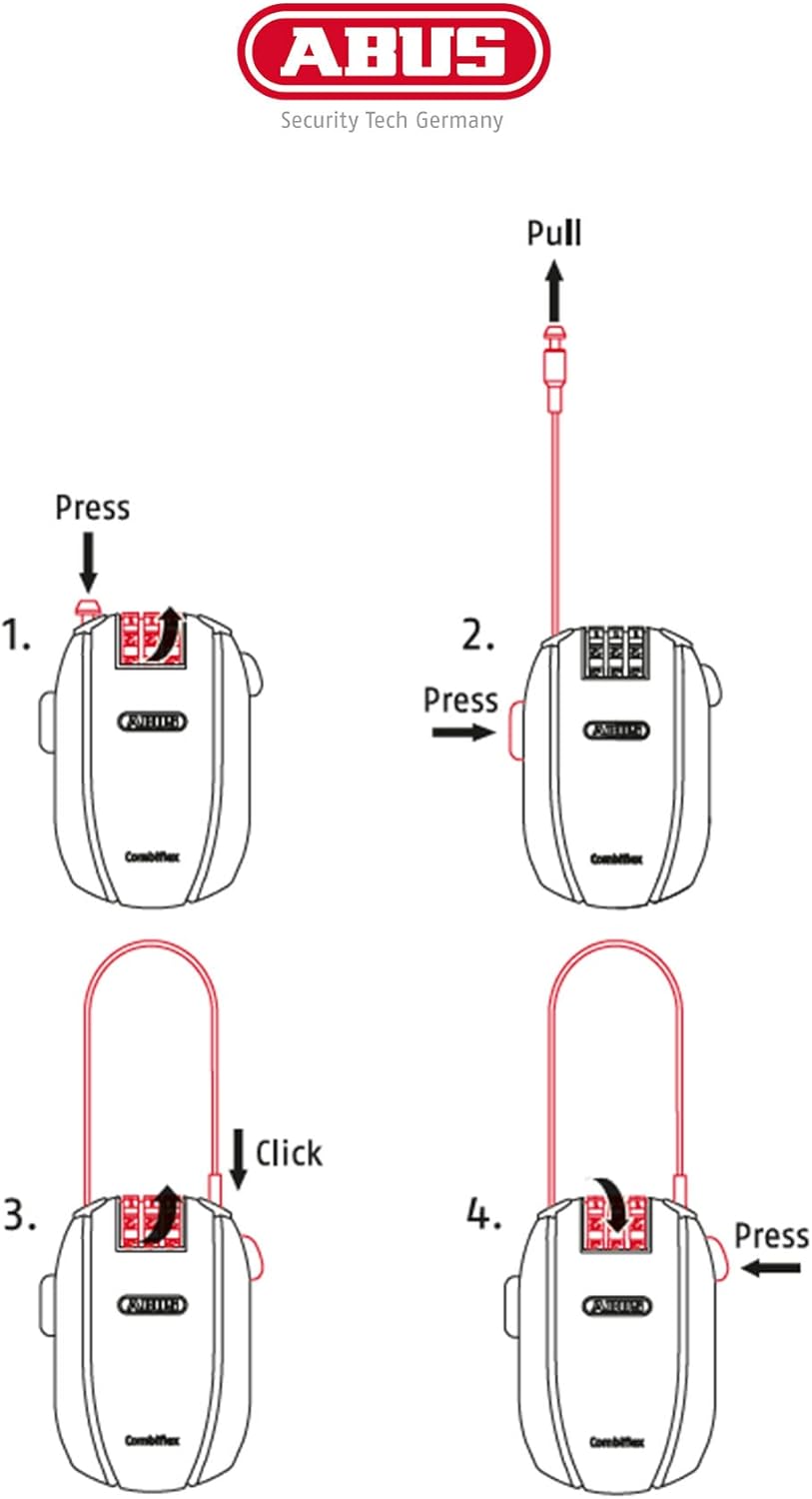 ABUS Kabelschloss Combiflex TravelGuard – Schloss zur Sicherung von Helm, Kinderwagen, Skiern und Ge