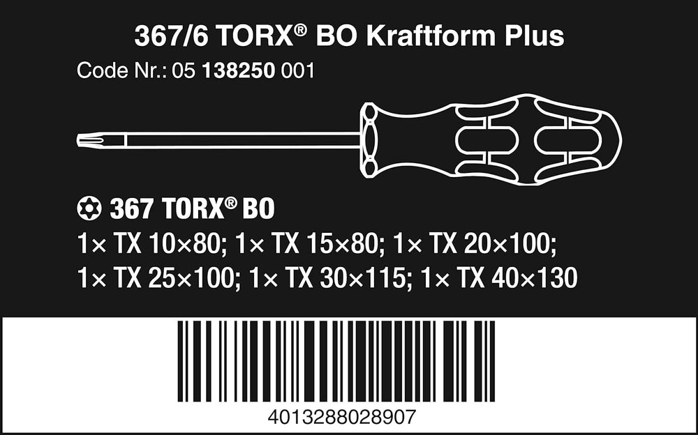 Wera TORX® BO-Schraubendrehersatz 367/6 TORX® BO Kraftform Plus + Rack, 6-teilig, 05138250001