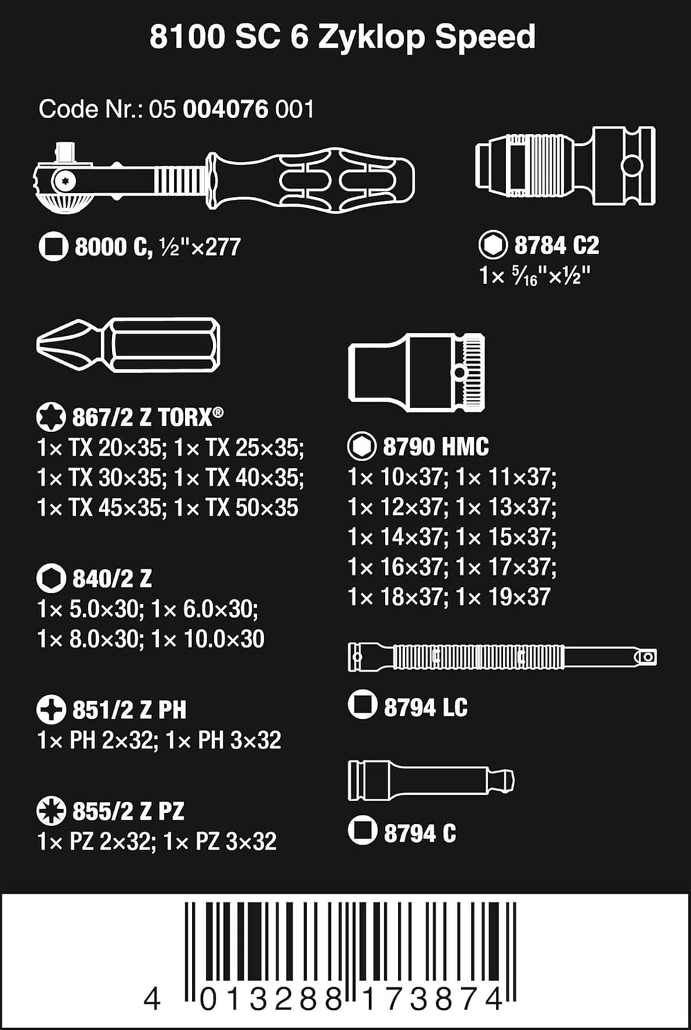 Wera Zyklop Speed-Knarrensatz 8100 SB 6. 3/8 Zoll, Antrieb, metrisch, 29-teilig, 05004046001 3/8 Zol