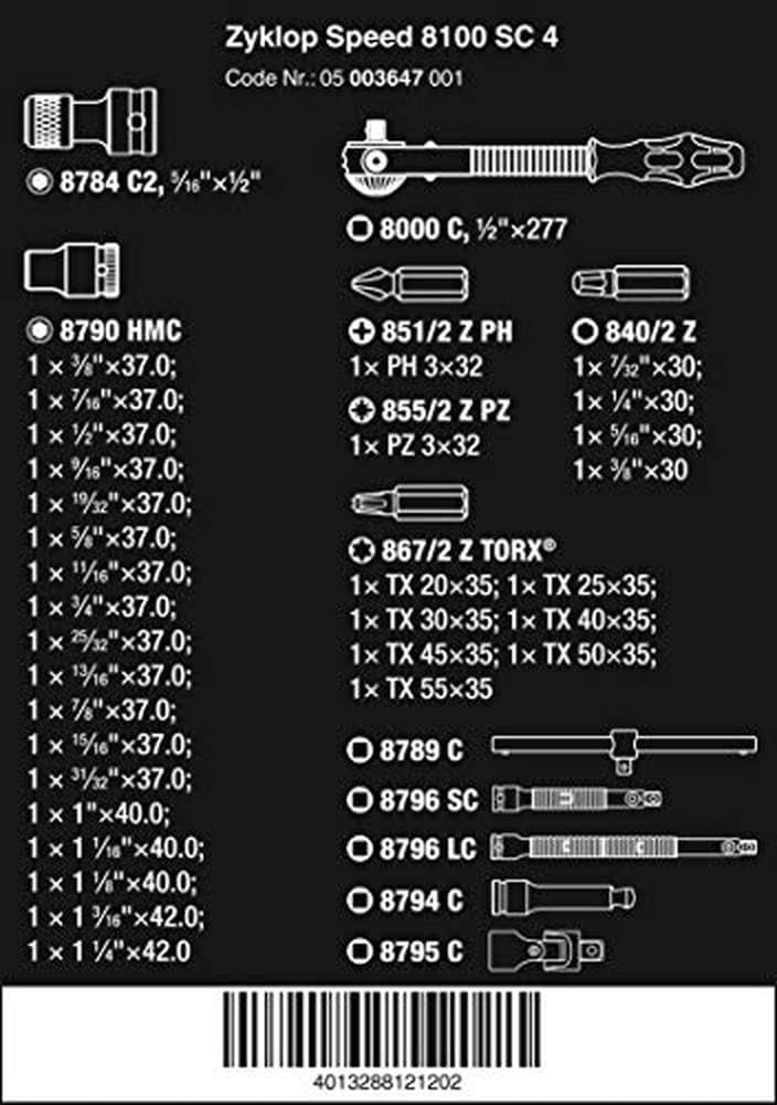 Wera Zyklop Speed-Knarrensatz 8100 SC 4, 1/2"-Antrieb, zöllig, 38-teilig, 05003647001 1/2 Zoll zölli
