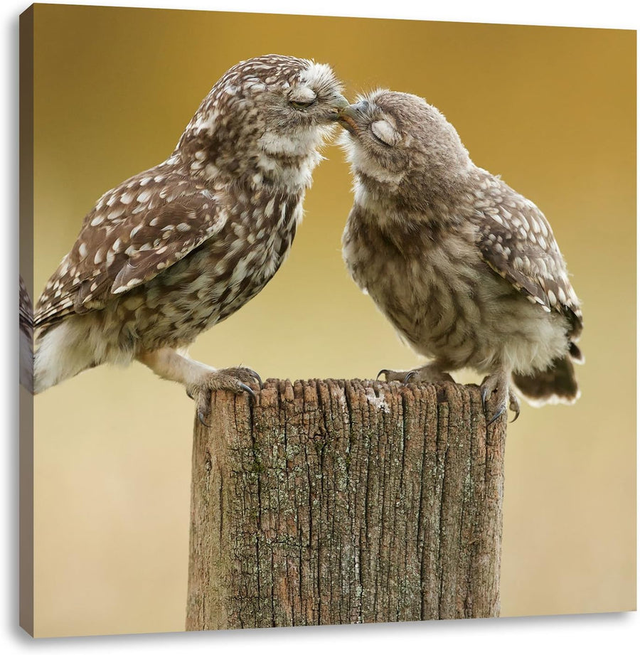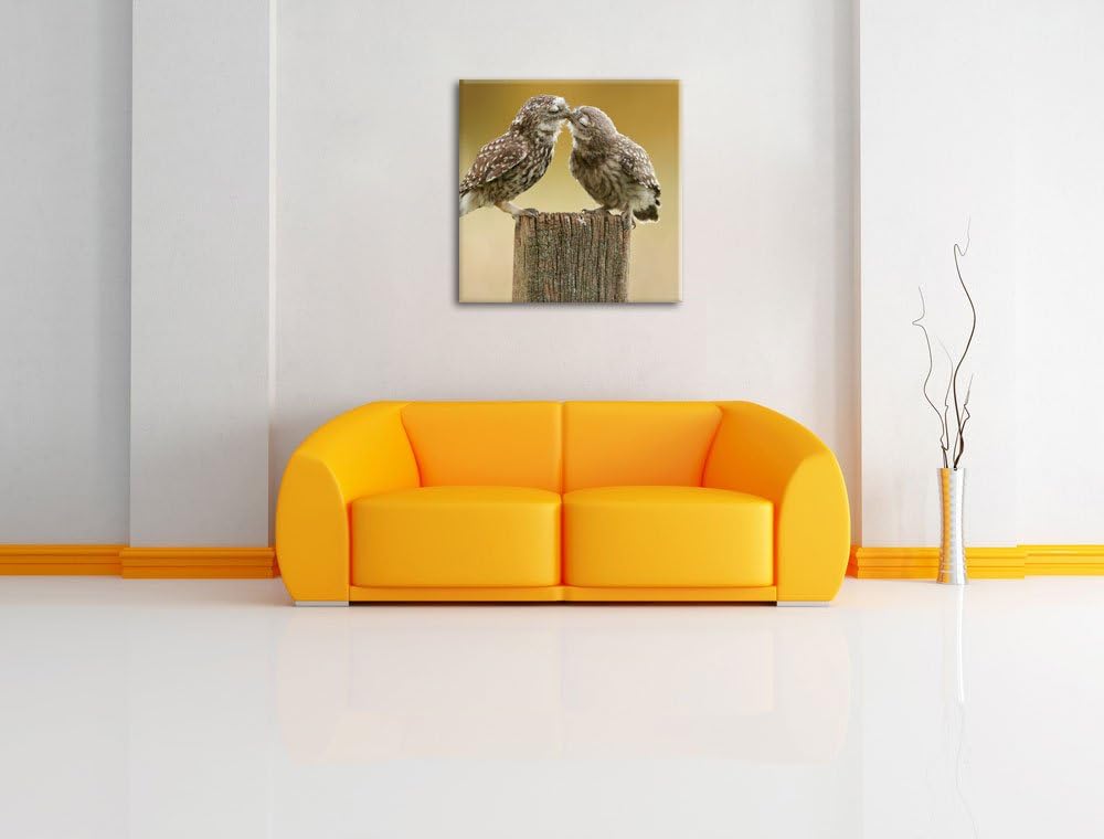 Pixxprint Küssende Eulen, Format: 70x70 auf Leinwand, XXL riesige Bilder fertig gerahmt mit Keilrahm