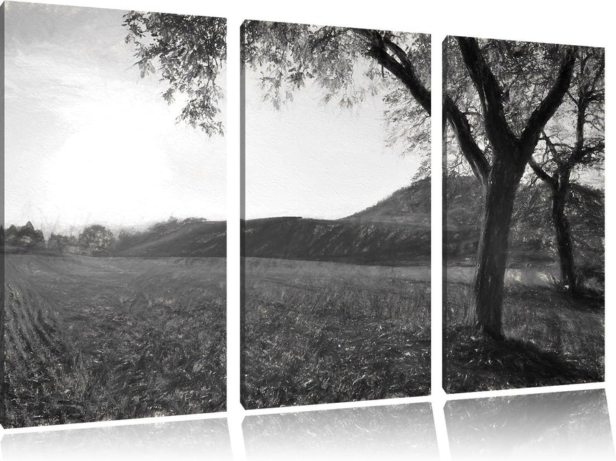 Pixxprint Landschaft im Herbst B&W Detail 3-Teiler Leinwandbild 120x80 Bild auf Leinwand