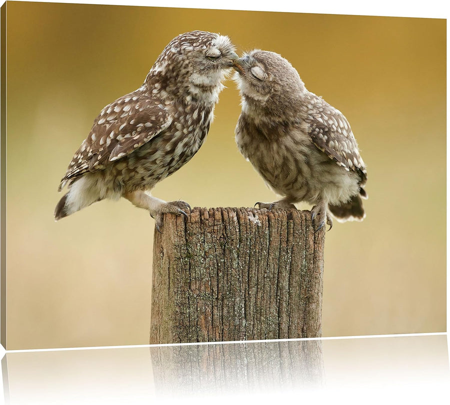 Pixxprint Küssende Eulen Kunst als Leinwandbild/Grösse: 100x70 / Wandbild/Kunstdruck/fertig bespannt