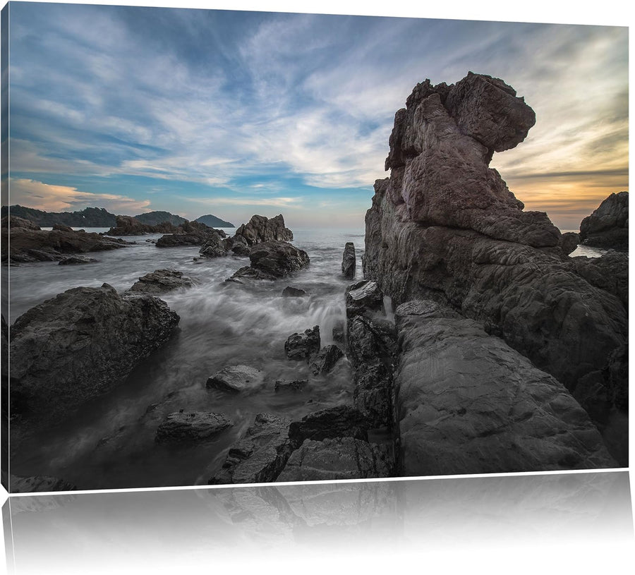 Pixxprint Küste bei Abenddämmerung als Leinwandbild/Grösse: 100x70 / Wandbild/Kunstdruck/fertig besp