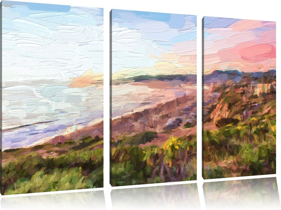 Pixxprint Küstenlinie mit schönen Sonnenuntergang Kunst Pinsel Effekt 3-Teiler Leinwandbild 120x80 B