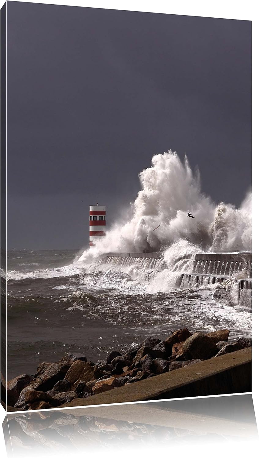 Pixxprint Küste Meer Wellen / 100x70cm Leinwandbild bespannt auf Holzrahmen/Wandbild Kunstdruck Deko