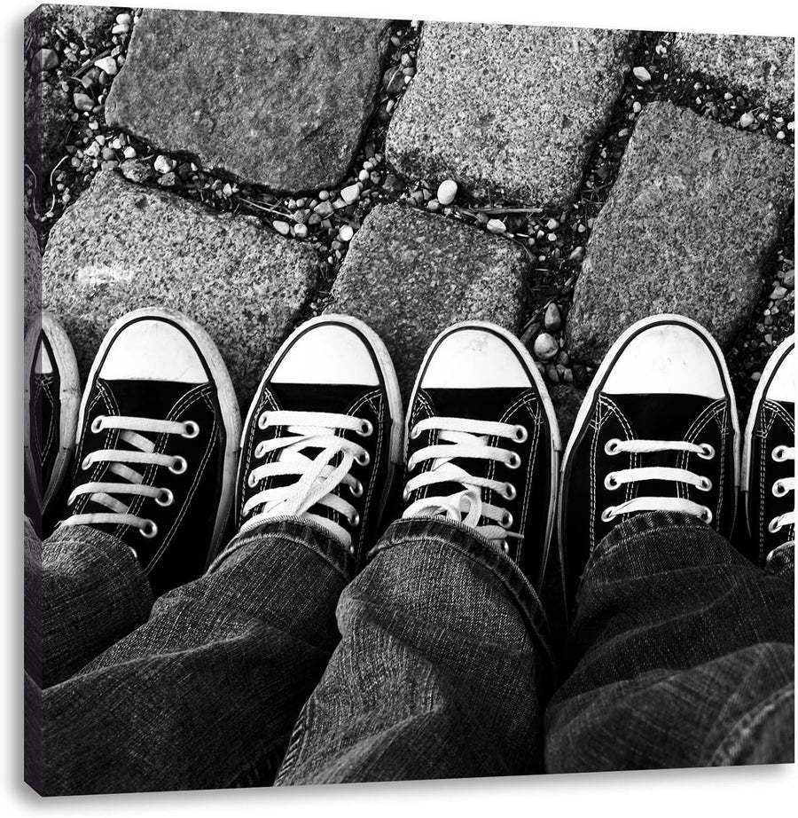 Pixxprint Lässige Schuhe schwarz/weiss als Leinwandbild/Grösse: 120x80 / Wandbild/Kunstdruck/fertig